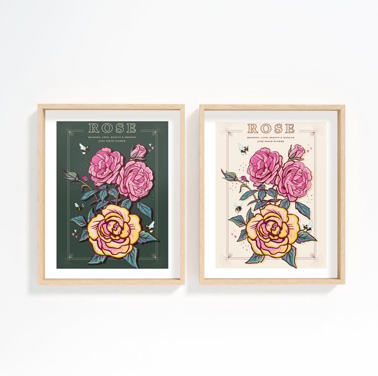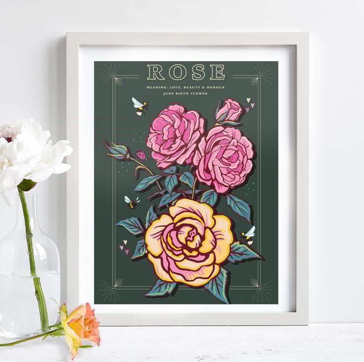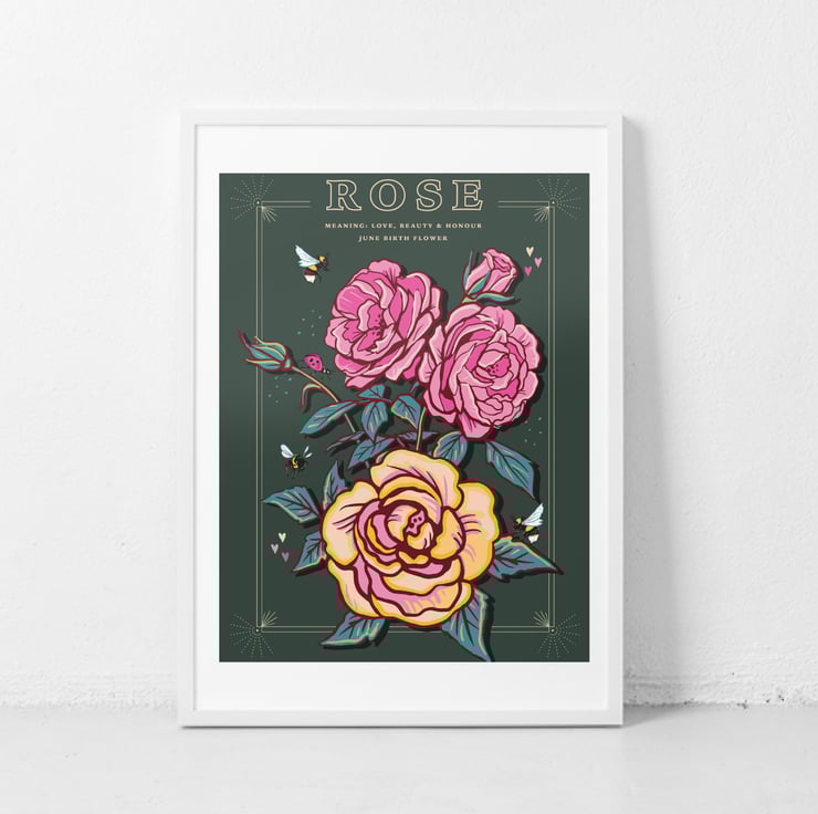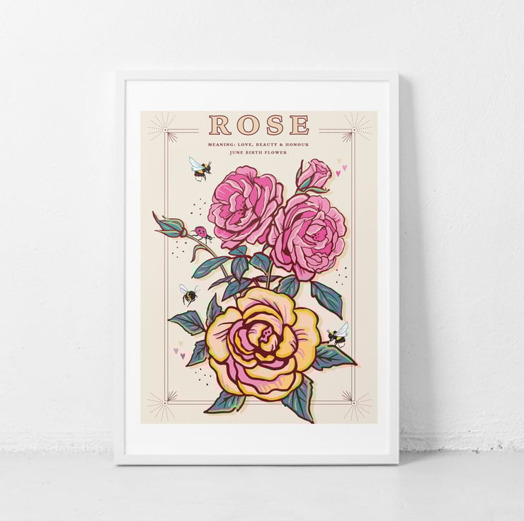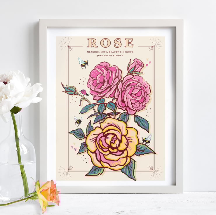 Rose, June Birth Flower, Language of Flowers Illustration Print