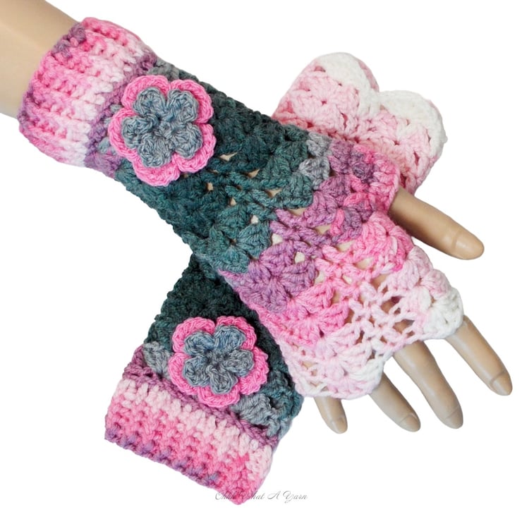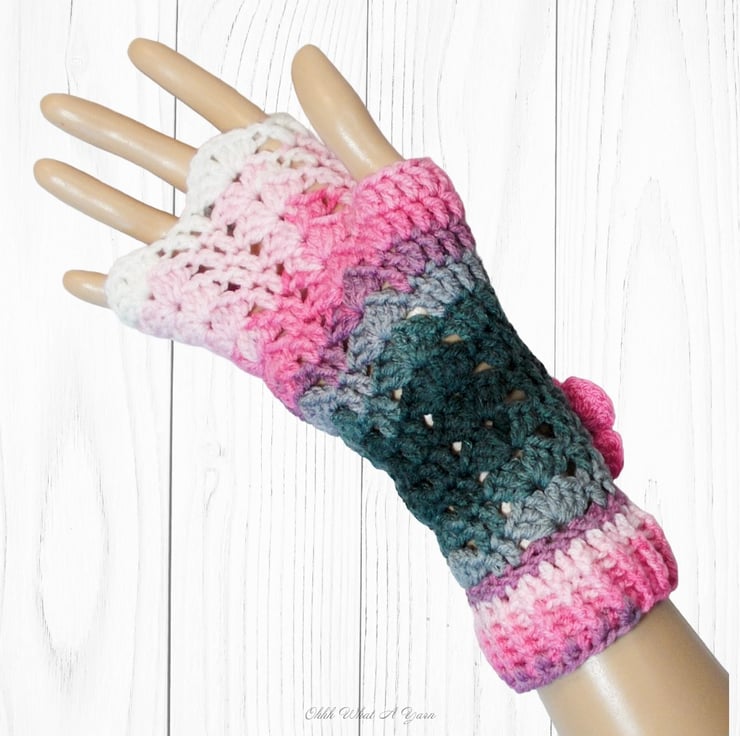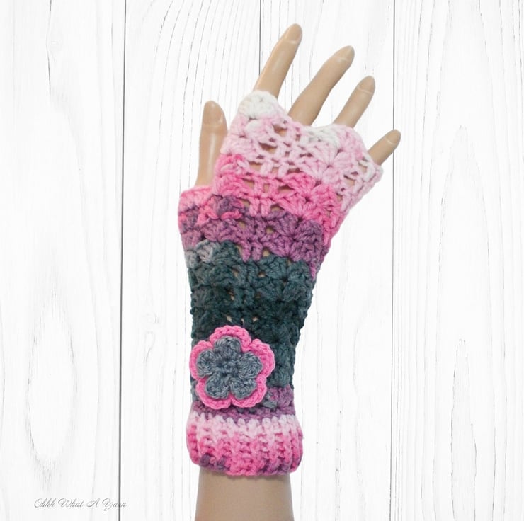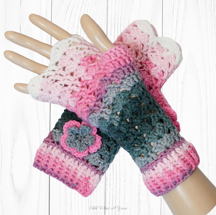 Crochet gloves. Pink grey and white ombre gloves, fingerless gloves.