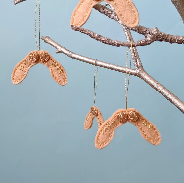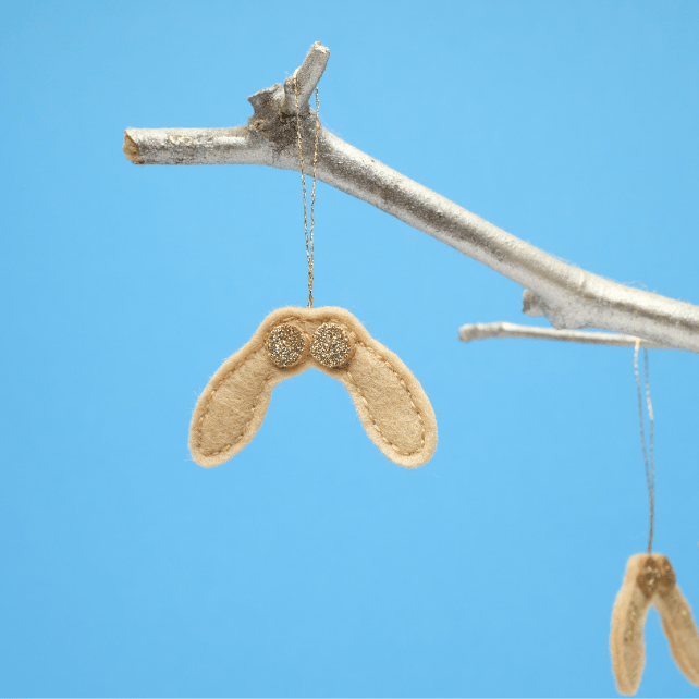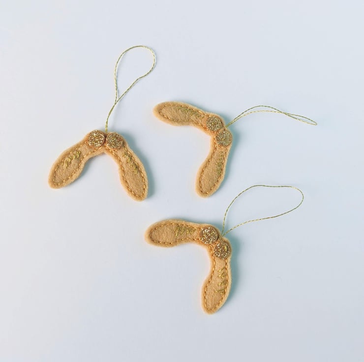 These 3 little sycamore seeds are an adorable hanging decoration to add a bit of woodland sparkle to your tree, door handle, workspace or anywhere you would like to add some seasonal ornaments. Perfect to add to your Autumn display.