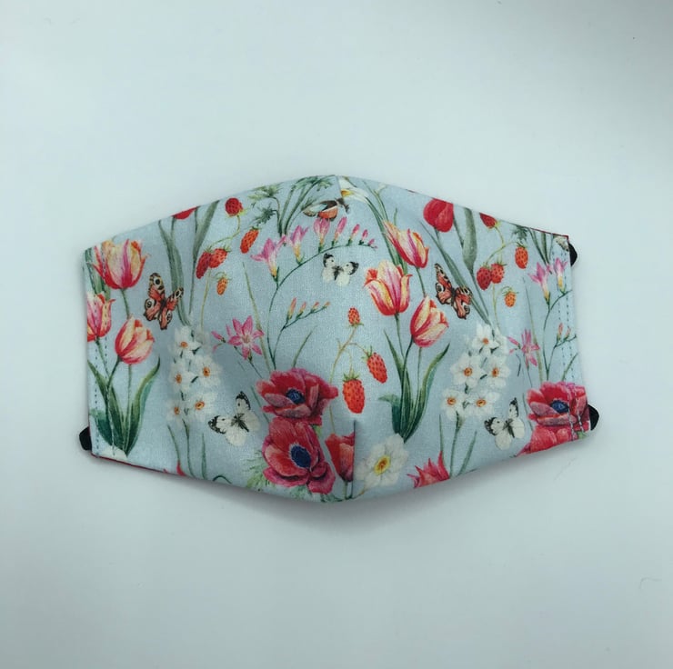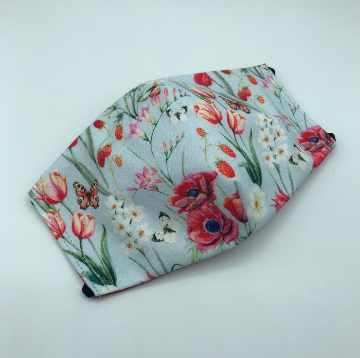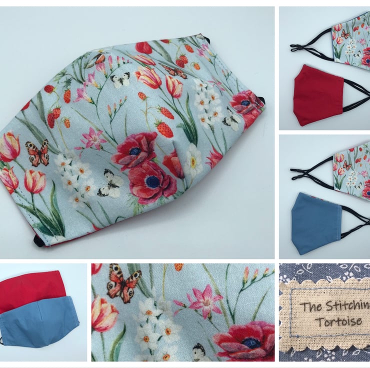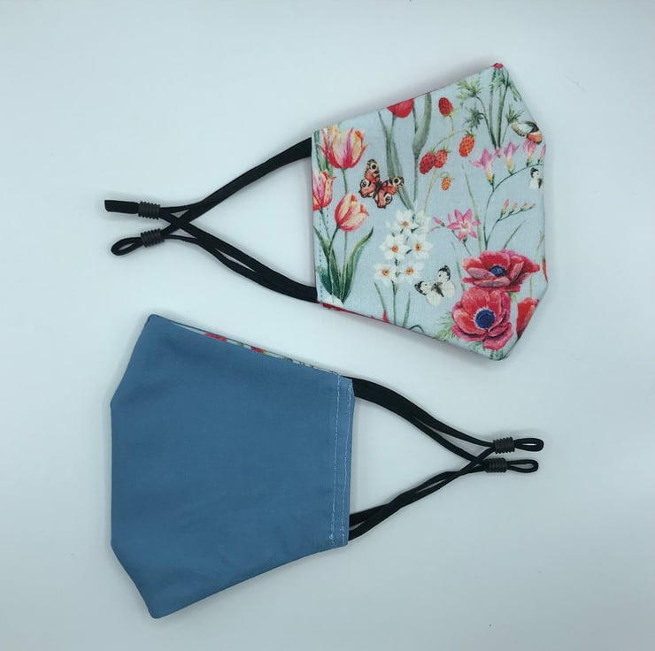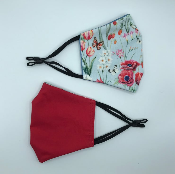 These masks are double-sided with an option of plain red or wodge blue fabric on reverse side.