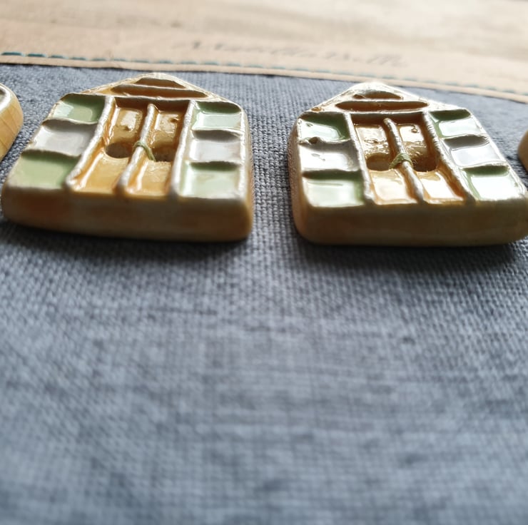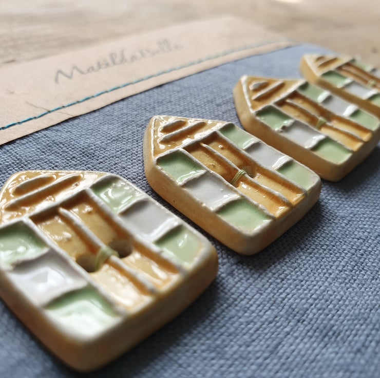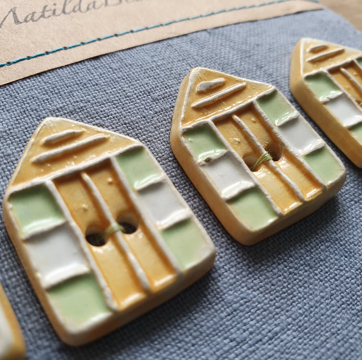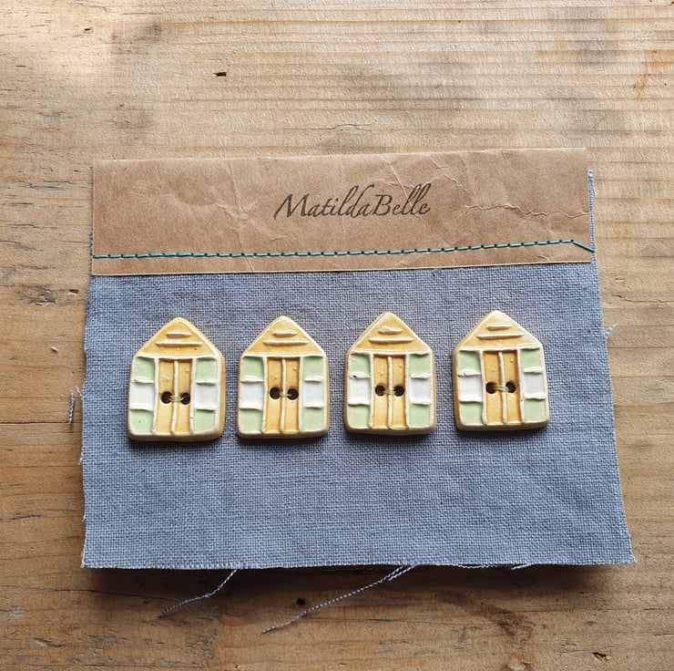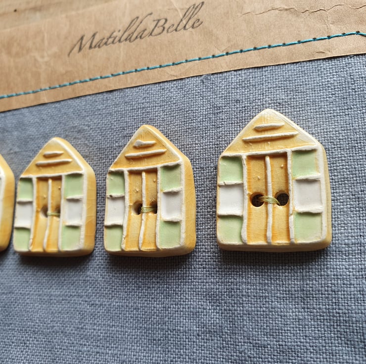 Set of four Fabulous Handmade Ceramic Beach Hut Buttons.