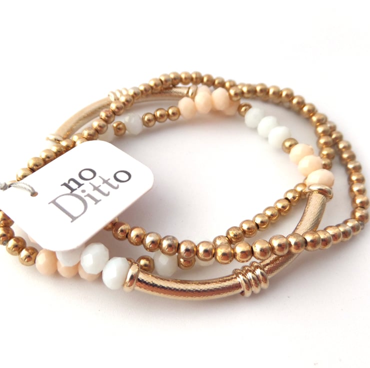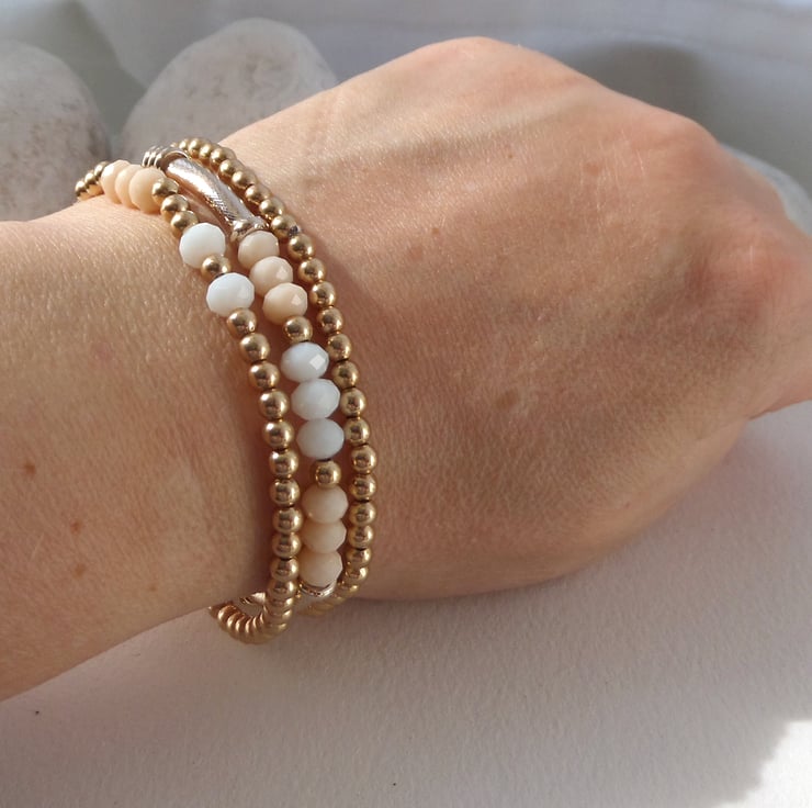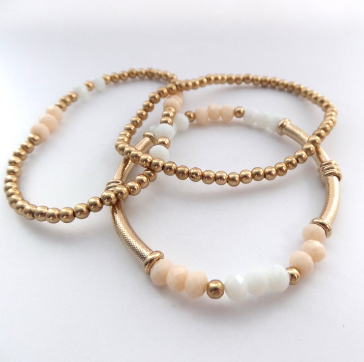 Lovely stack of 3 bracelets in champagne rose gold.