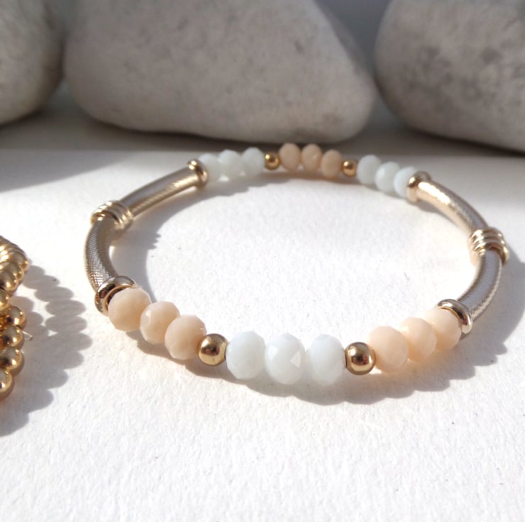 with white opaque and nude peachy crystals. perfect for summer.