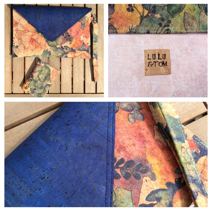 I love sewing with cork fabric. It is lightweight and has a soft velvety texture making it ideal for this clutch bag. Being durable and water resistant it is also practical. The natural grain and colour variation of this fabric makes each item unique.