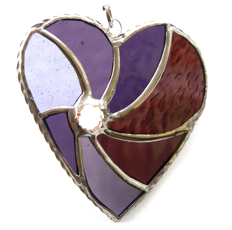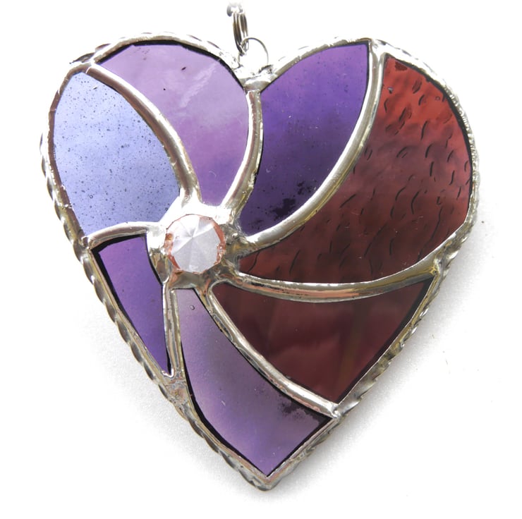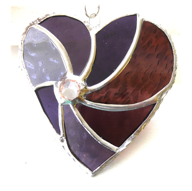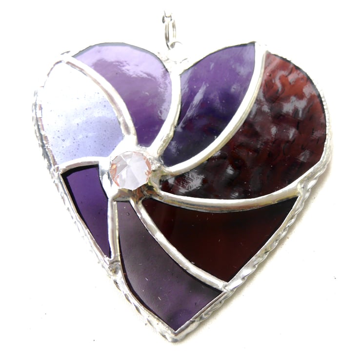 I've made the heart from 7 types and colours of glass, gorgeous purple, textures and iridescence and I've set them in a swirl round a sparkling crystal.
