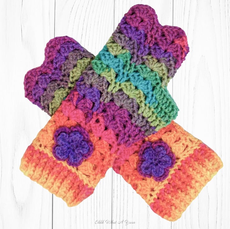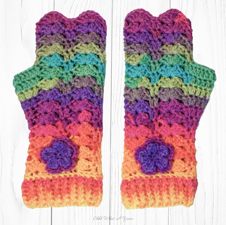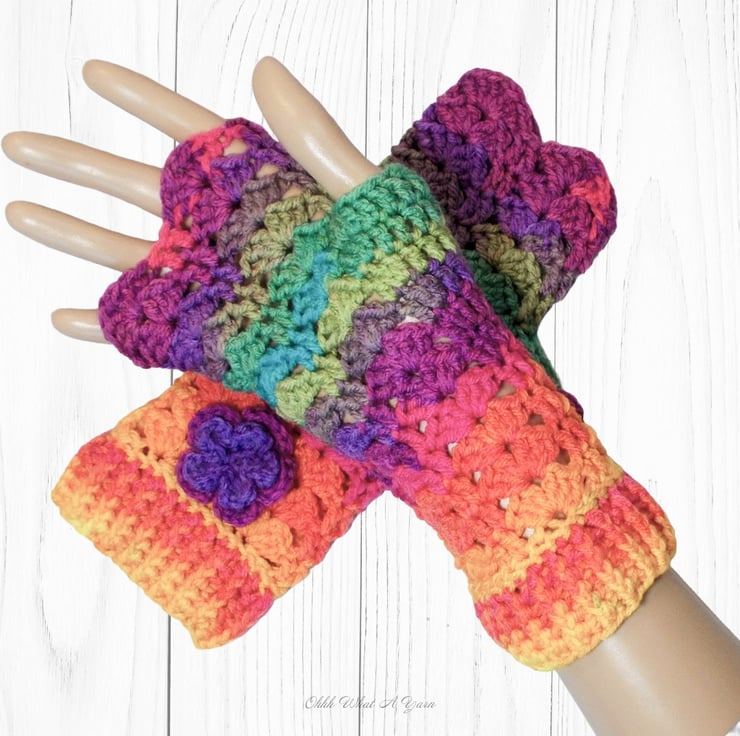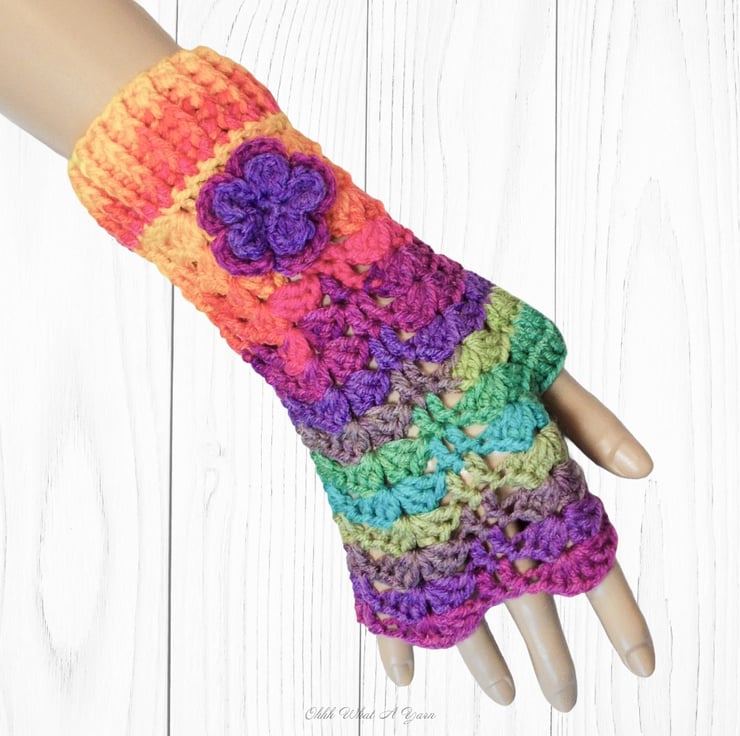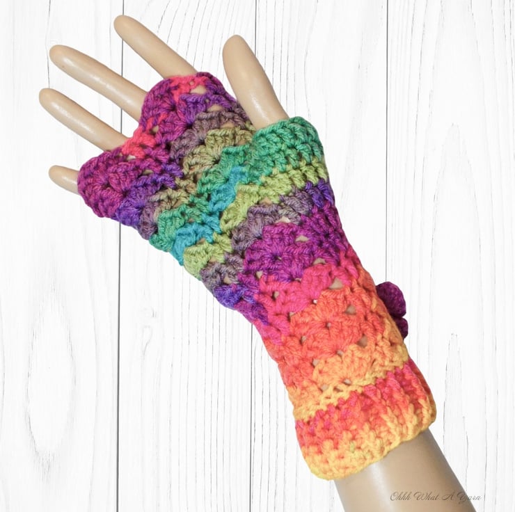 Crochet gloves. Bright rainbow ladies gloves, fingerless gloves. Rainbow gloves