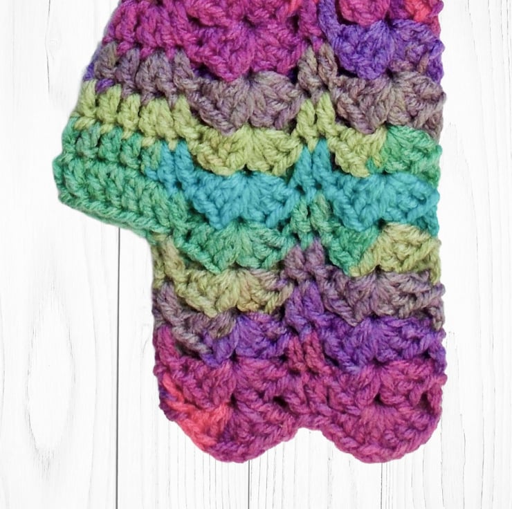 Crocheted using premium 100 % acrylic colour changing yarn in gorgeous rainbow shades.
