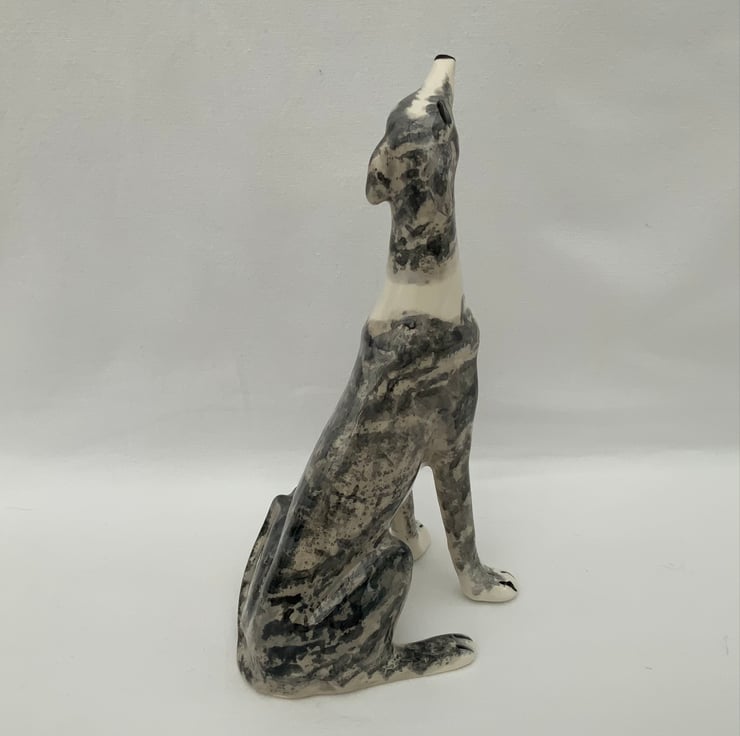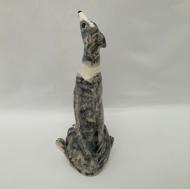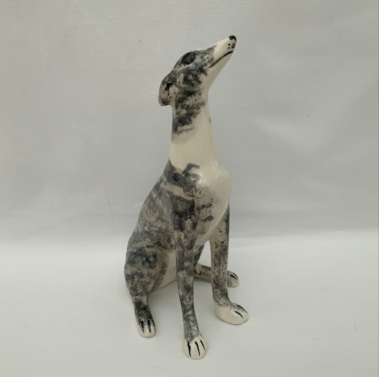 Slip cast in earthenware clay from a piece mould made from my original sitting greyhound sculpture.