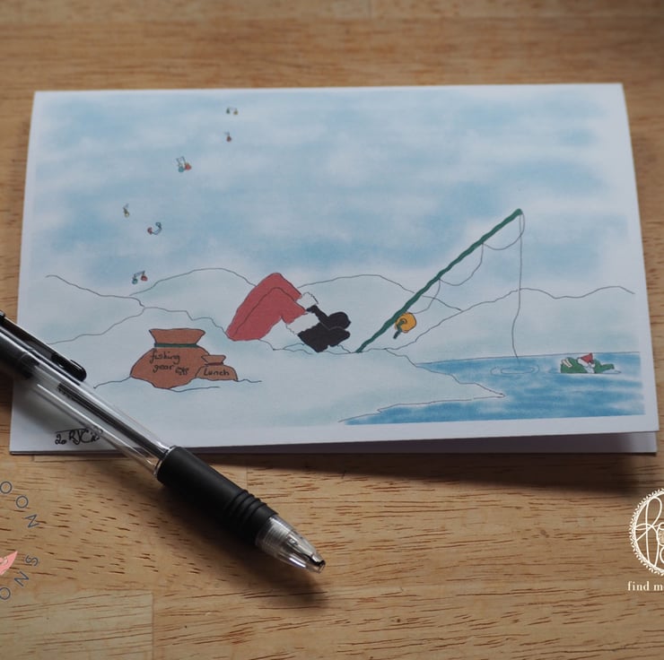 I like to think that someone as busy as Santa, gets the opportunity to just chill out for an afternoon now and again. He is by the water’s edge, whistling a festive tune with his fishing line idly dangling in the water as the local fish get into the festive spirit.