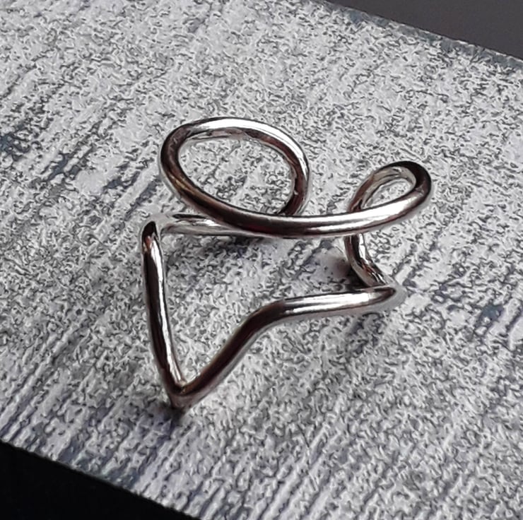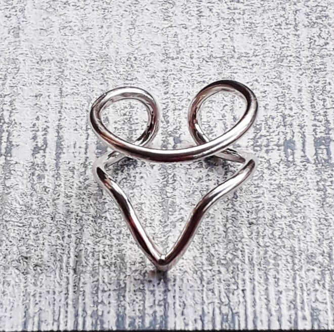 Hand crafted small double band ring, the ring is made from a continuous length of solid sterling silver wire with one V on the bottom and plain on the top band.