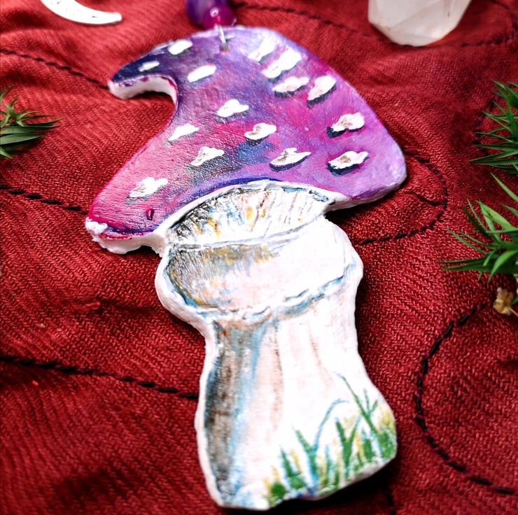 The detail on this shroom, measuring about 14cm from top of bead to bottom of stem, is gorgeous, creating a tryly special and unique decoration.