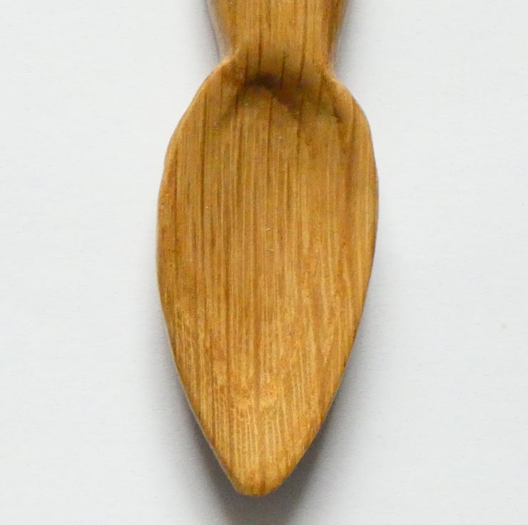 The love spoon is approximately 22 cms long, approximately 6 cms at its widest point and approximately 1 cm in depth.