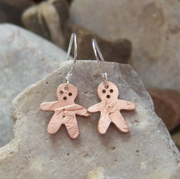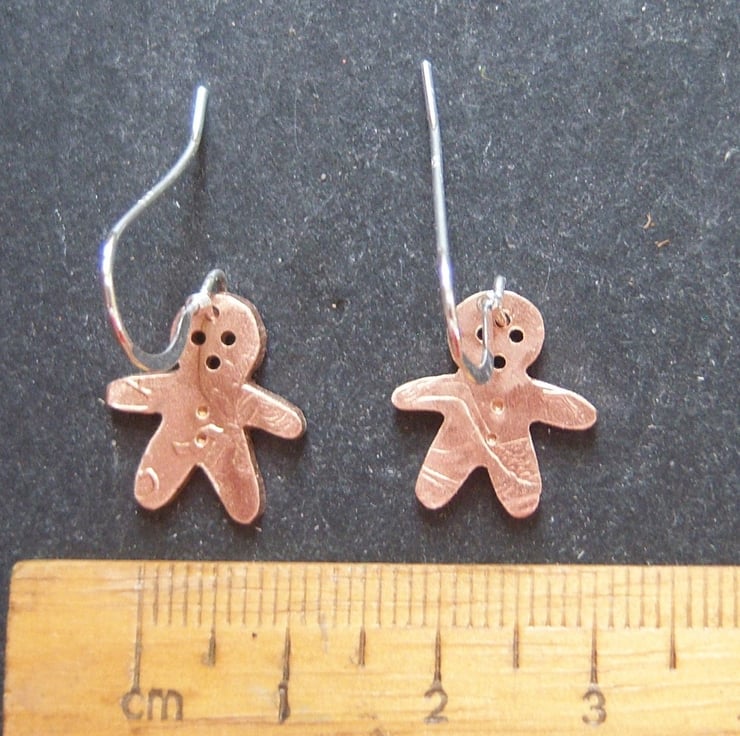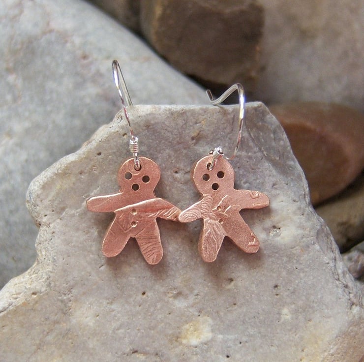 Gingerbreadmen cut from a pre-decimal penny coin. These are pierced individually with a fine-bladed jeweller's saw, NOT with a laser cutter