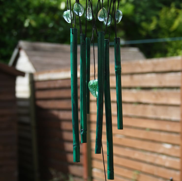 Beautiful, handmade, painted and varnished coconut bamboo/cane wind chime.