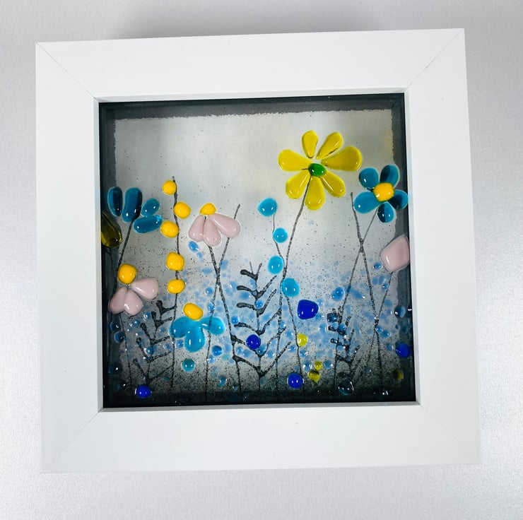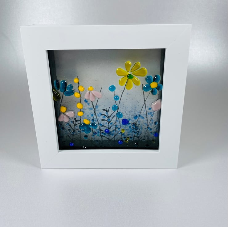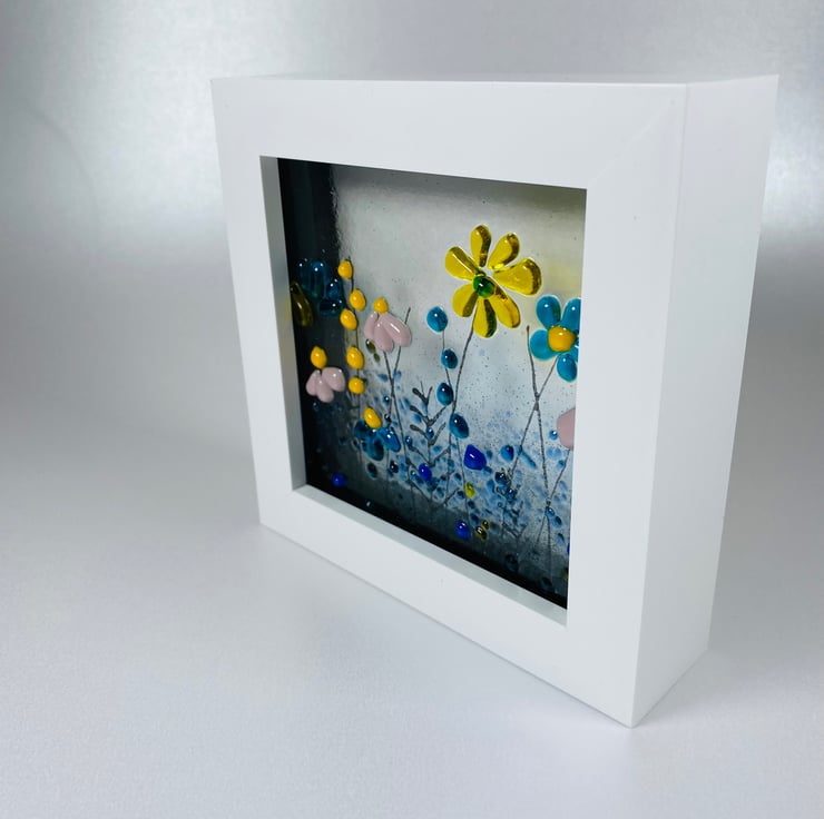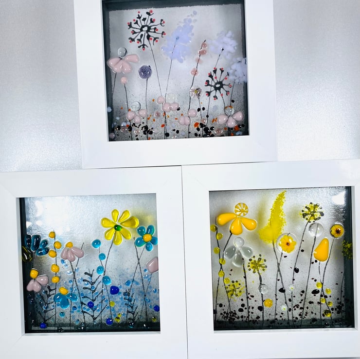 Pretty and affordable alternatives to my larger meadows pictures . These are 13cm square quality acrylic frames . The back can be taken off to allow light through if using as a freestanding picture , or back in if wall mounting . There are 3 in this series and they look lovely mounted together .