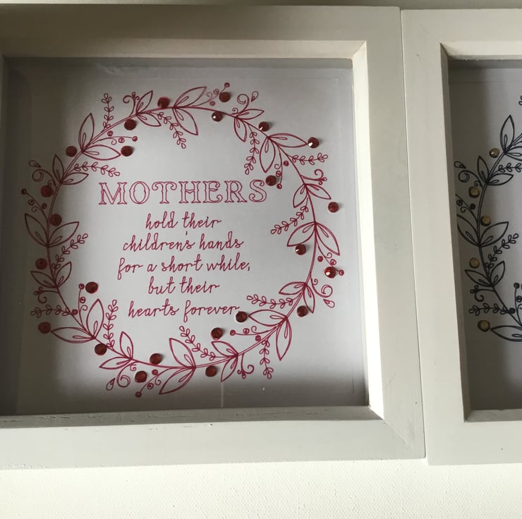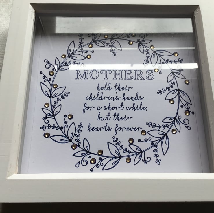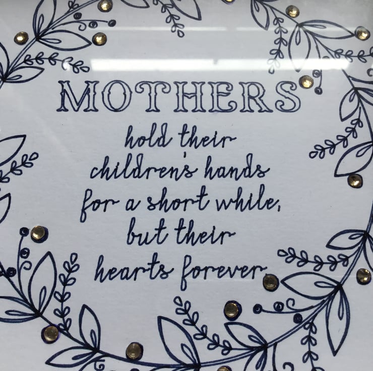 The verse says Mothers hold their children’s hands for a short while but their hearts forever.