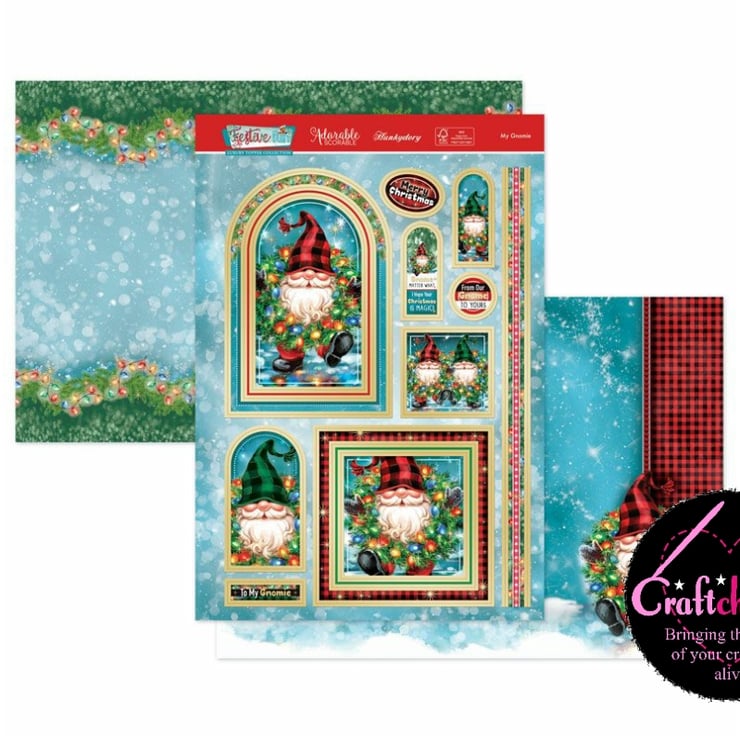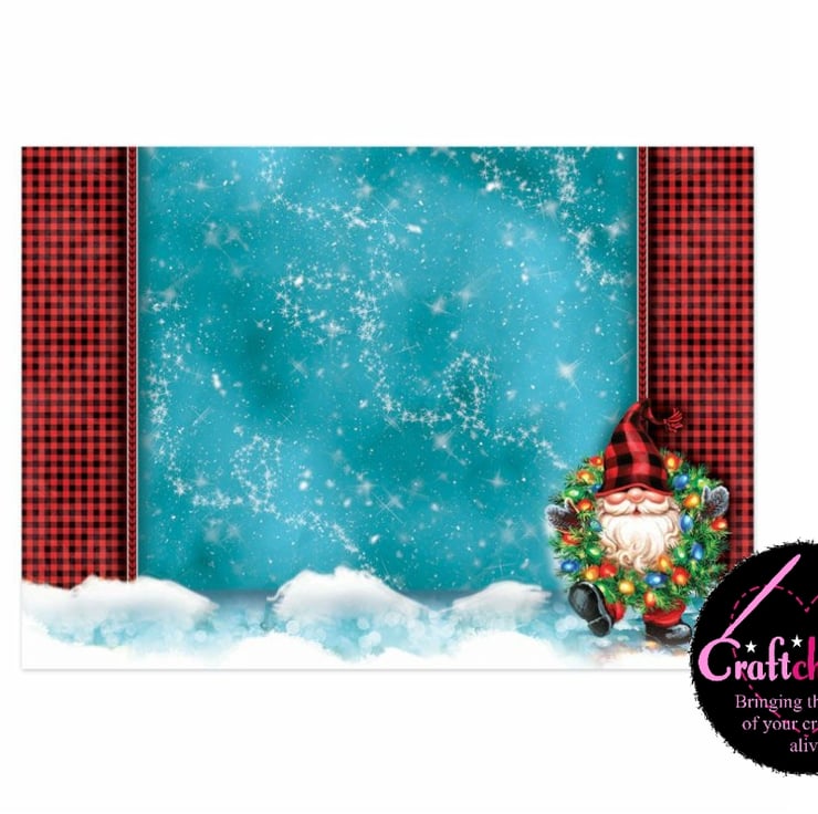 Dust off those dancing shoes in time for Christmas parties with the My Gnomie Topper Set. This topper set features jolly, fun-loving Christmas gnomes dancing with wreaths scattered with bright fairy lights. Lumberjack style plaid features in the borders as well as cute oversized hats. The bright pacific blue, red and jade green colours and the bokeh patterns and sparkles work in unison to bring the fun artwork to life. My Gnomie is great for that special man in your life at Christmas.