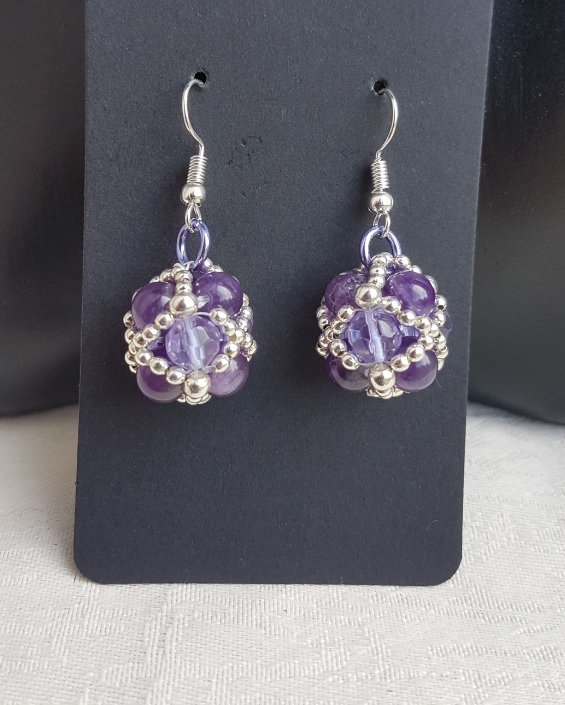 Earring length is approx 4cm long from the top of the ear wire to the bottom of the Beaded Bead. Beaded Bead is made up of 9No Amethyst beads and Silver Plated round beads.