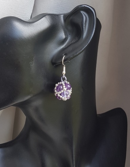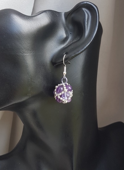 Earring length is approx 4cm long from the top of the ear wire to the bottom of the Beaded Bead. Beaded Bead is made up of 9No Amethyst beads and Silver Plated round beads.