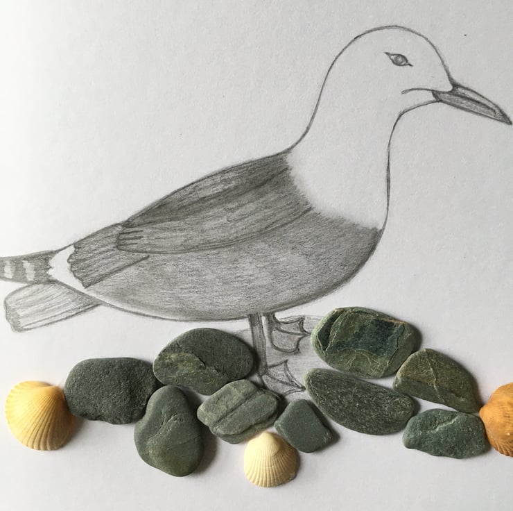 Hand drawn in graphite pencil with shells and pebbles from St Ives bay. Would look lovely in a frame.
