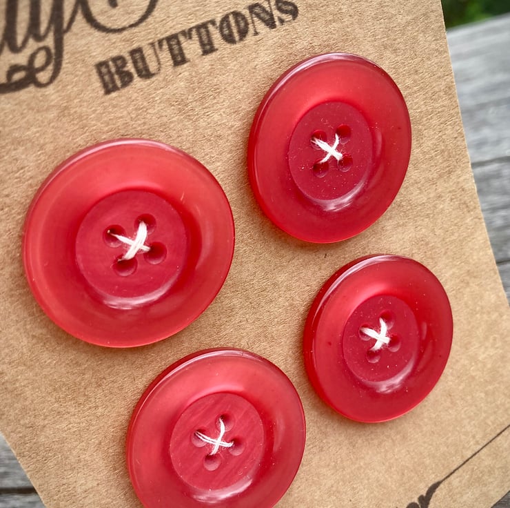 4 Vintage Pearly Red Buttons 34mm. These would great on a chinky knot or a jacket.