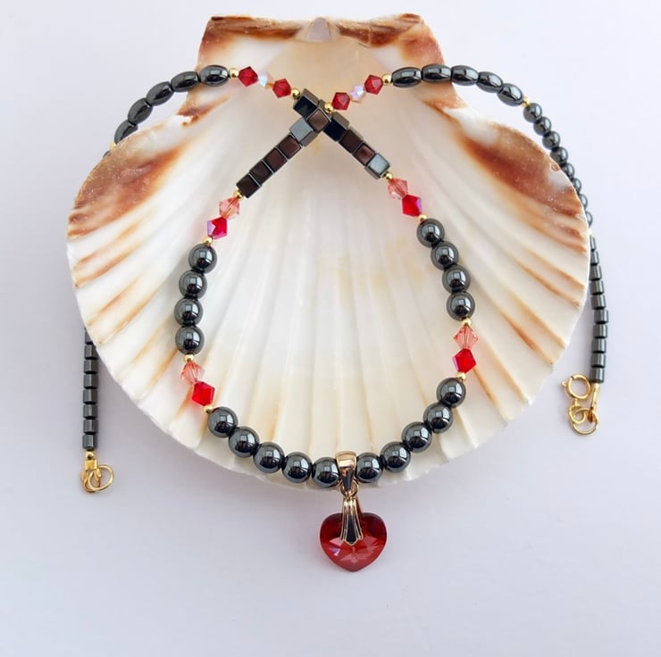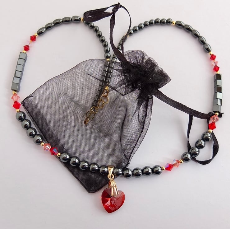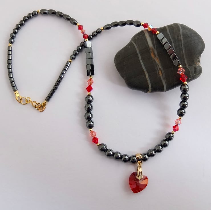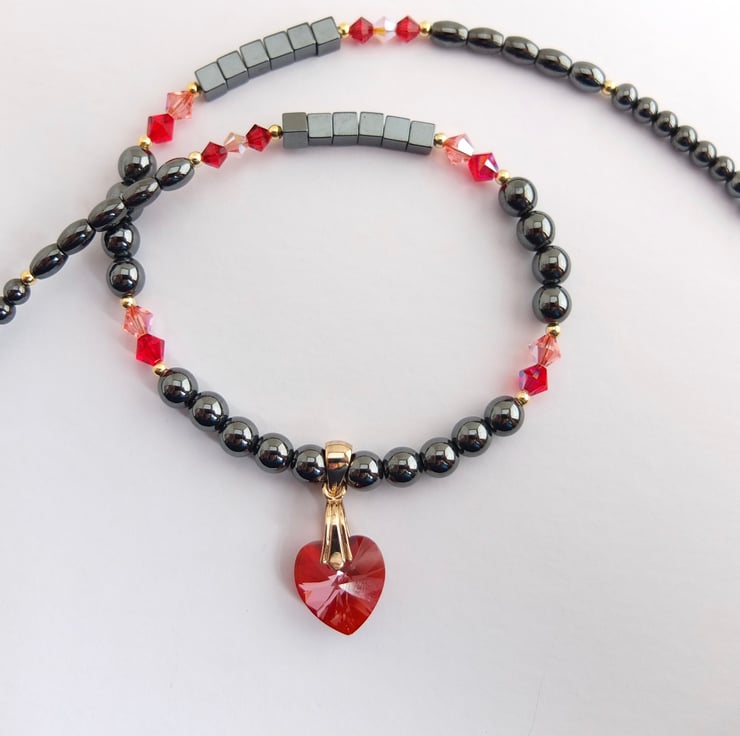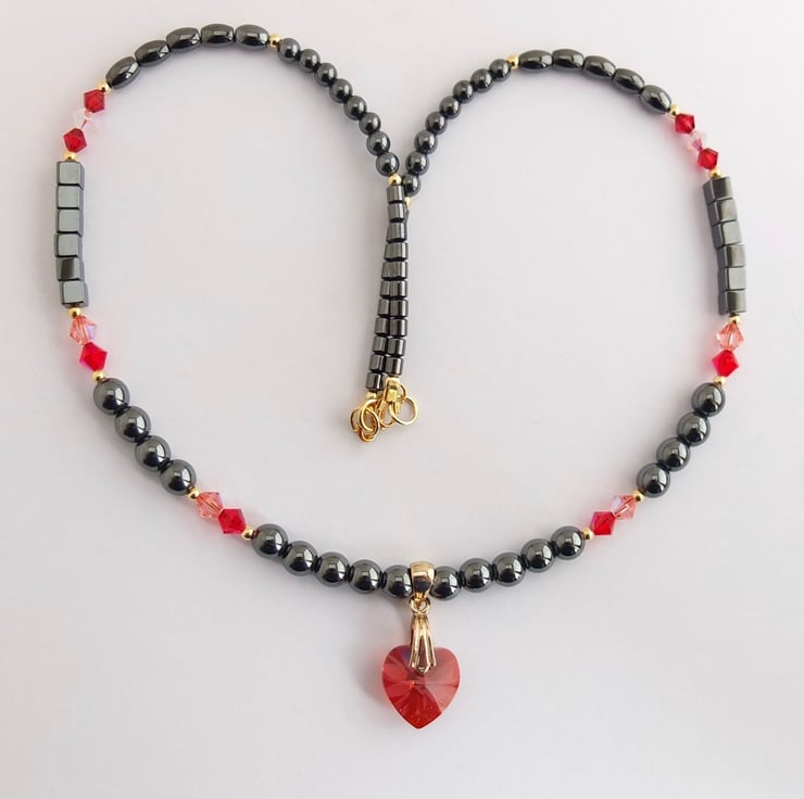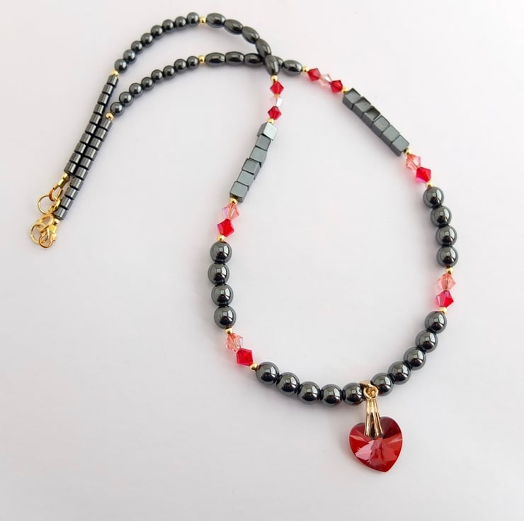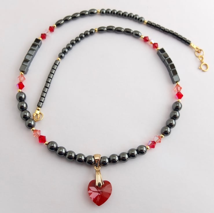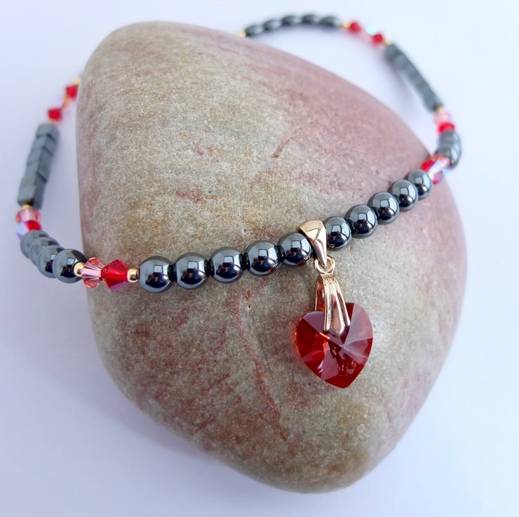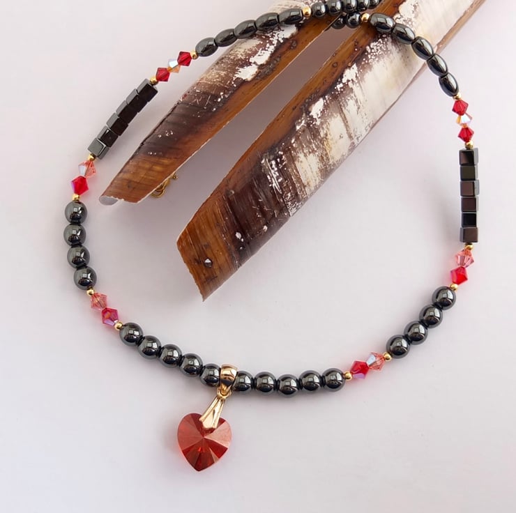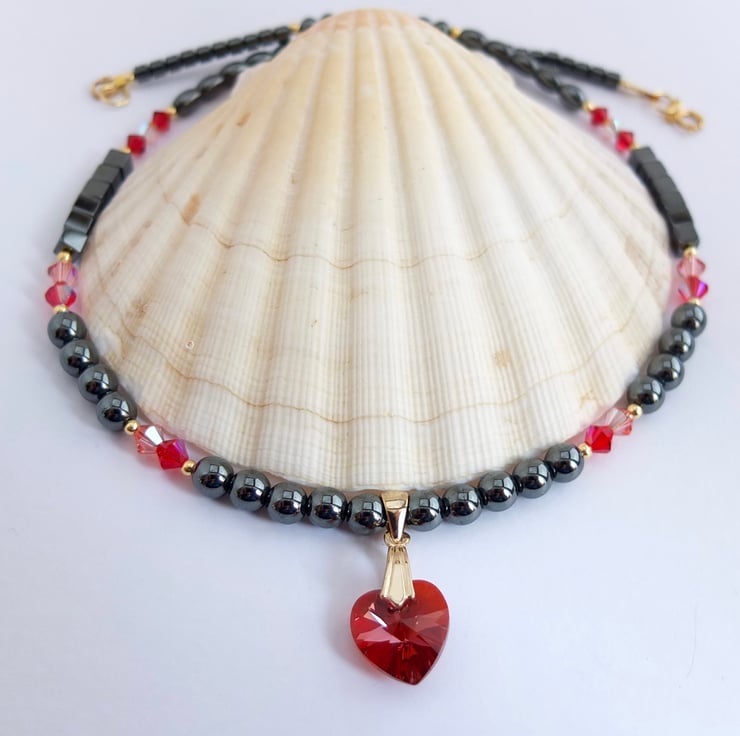 A beautifully sparkly 14mm Swarovski crystal heart, in a colour called "red magma", forms the centrepiece for this elegant pendant.