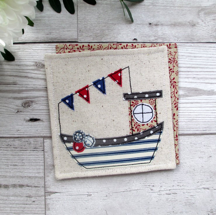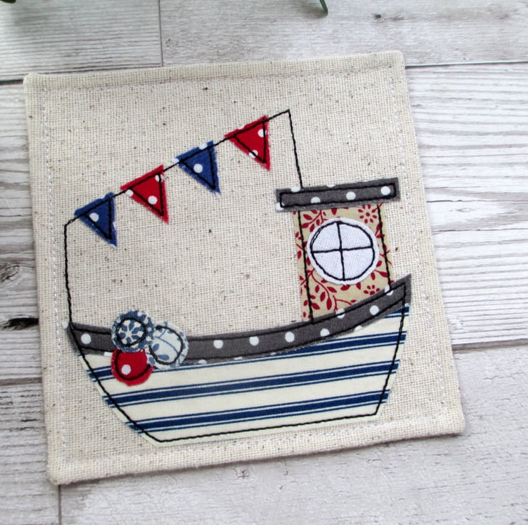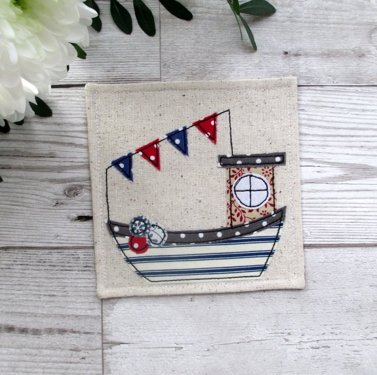 This fabric fishing boat coaster will be a fun and quirky addition to a seaside home.