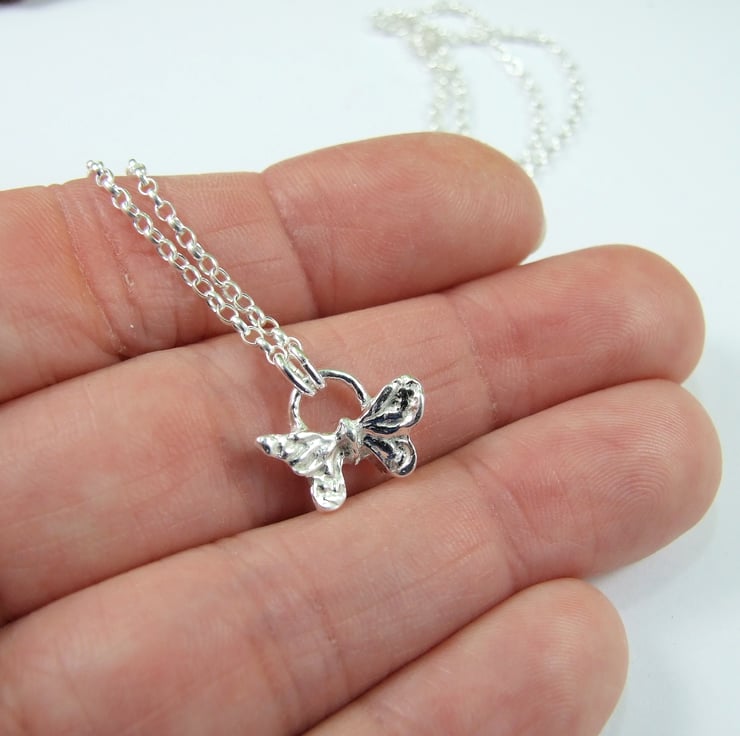 I have created the butterfly pendant from fine silver clay cast in a small butterfly mould and kiln fired. To this I have soldered a silver bail and fitted to sterling silver chain 18 inch length.