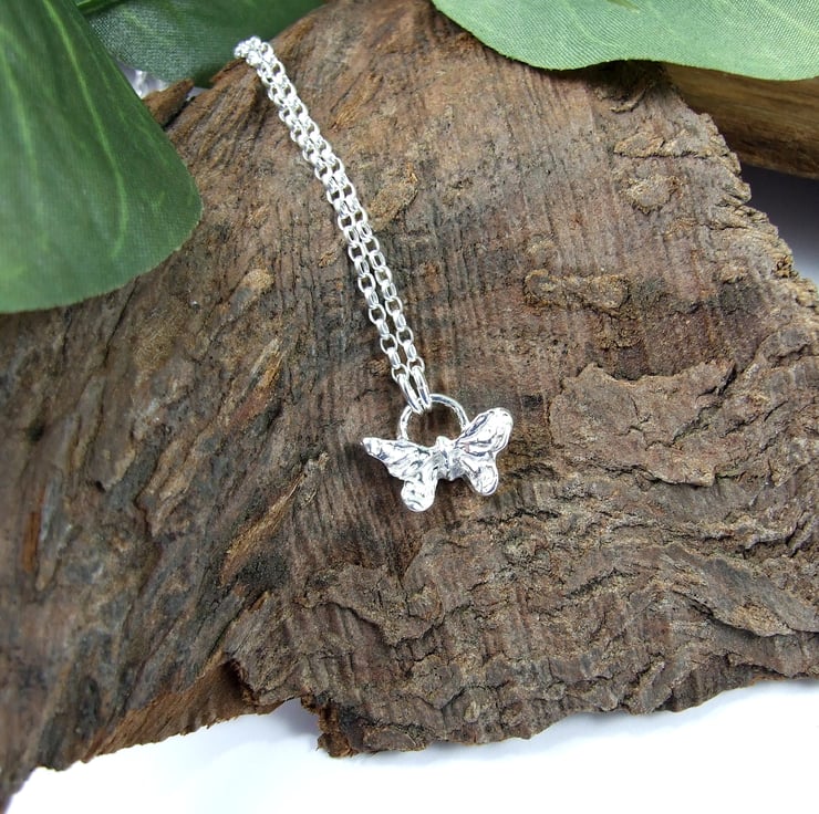 Fine Silver Butterfly Pendant on sterling silver chain. Butterfly measures approx 12mm across widest part
