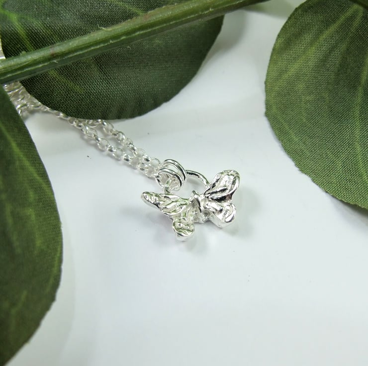 Fine Silver Dainty Butterfly Necklace. Minimalist Pendant
