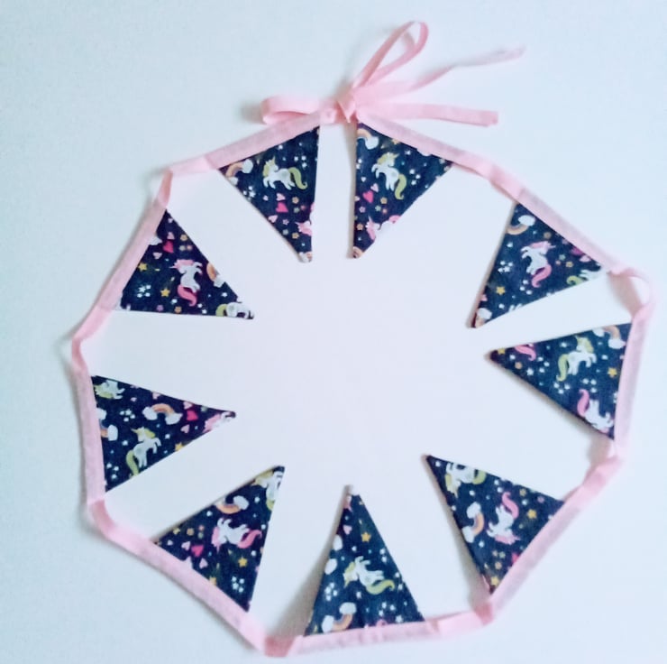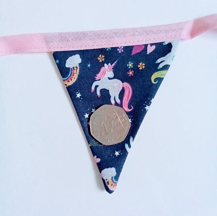 Each flag measures approx 10.5cm high by 8.5cm at the widest place (top). There are 9 flags measuring a total of 1.94 metres.