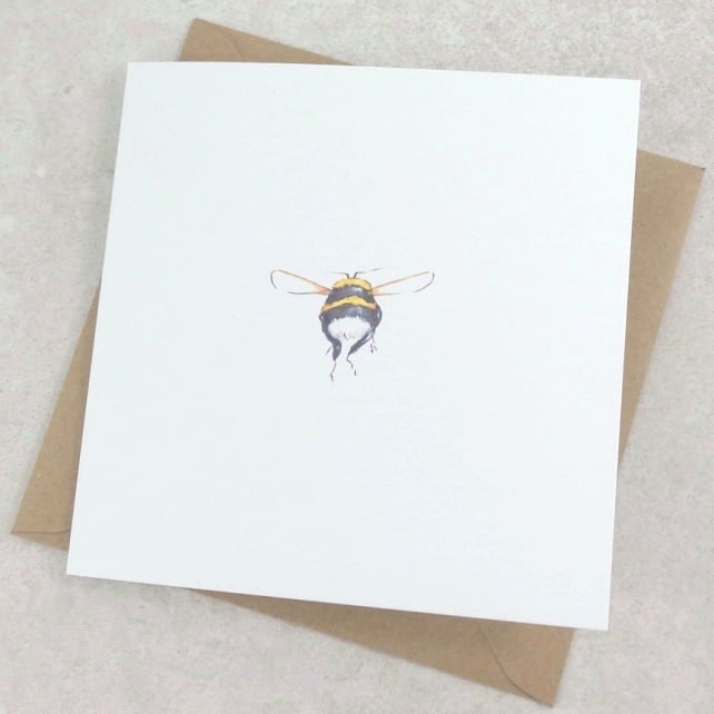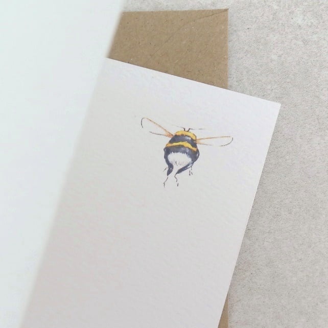 My greeting card 'Bumble bee' has been printed with my original artwork on to 100% recycled felted white 270g card and has been left blank inside for your own special message. This is a lovely card for a Birthday, thank you, get well or any occasion. This felted white card has a lovely textured finish.