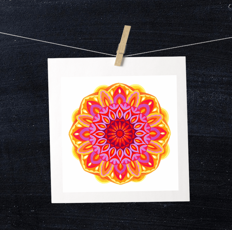 Open edition A4 digital print of a brightly coloured Sunrise Mandala