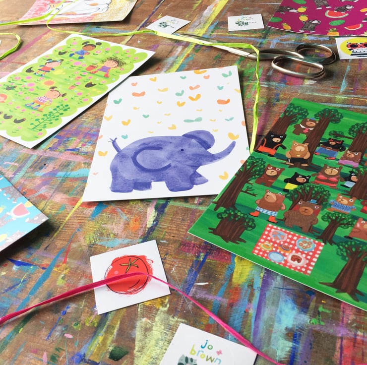 Happy colourful gifts by Jo Brown, can be sent direct to recipient, with a handwritten note.