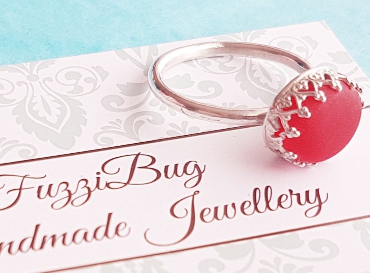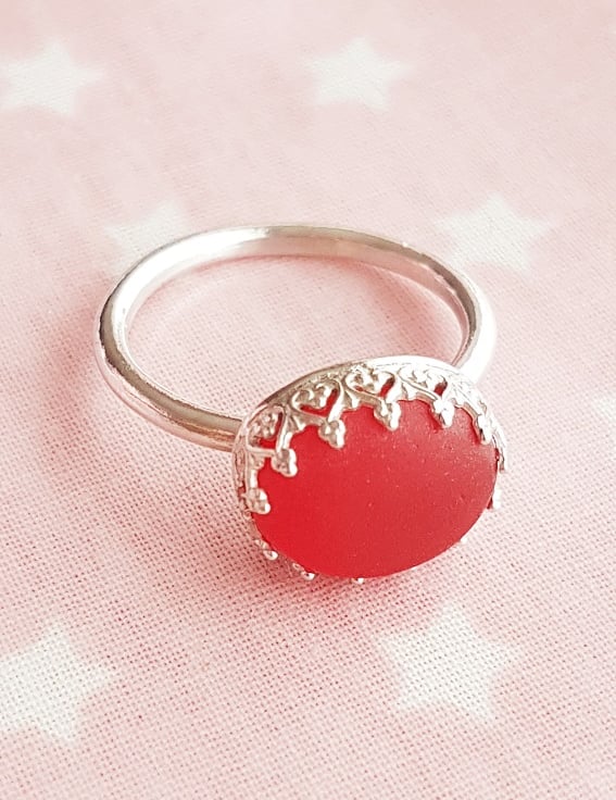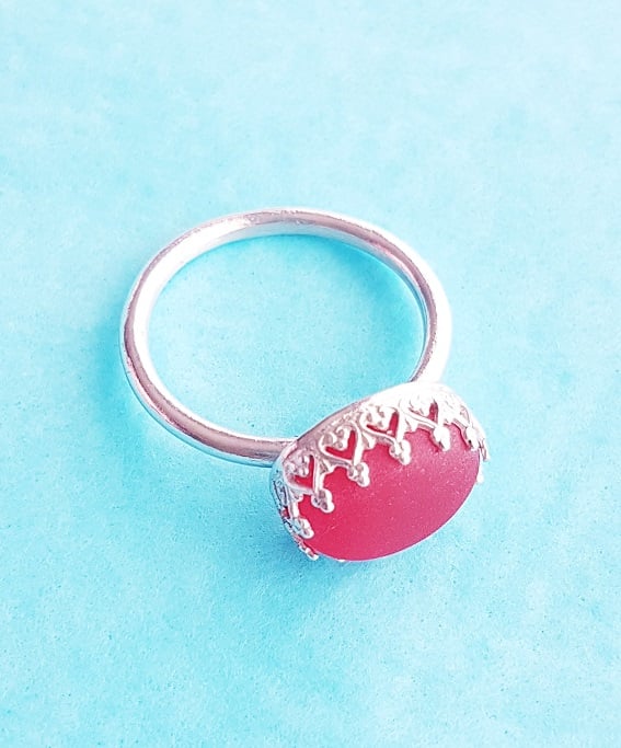 This gorgeous, bright red seaglass ring really catches the eye, made from sterling silver with a crown styled bezel wrap.