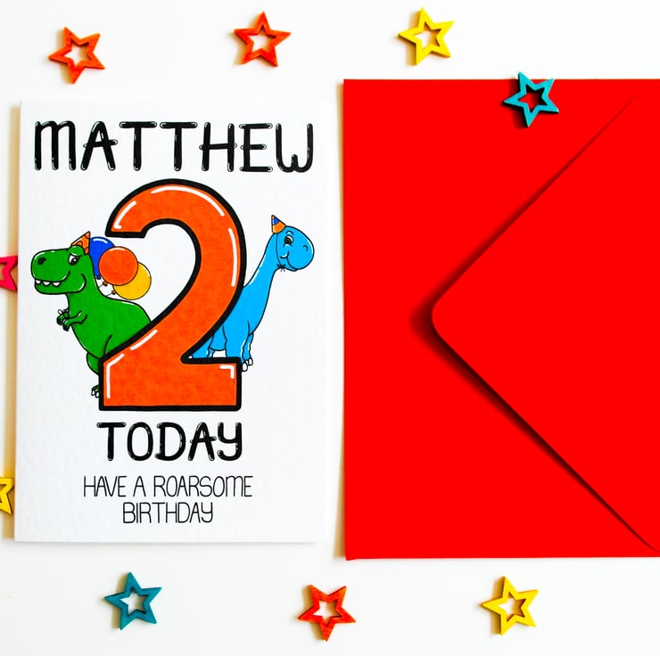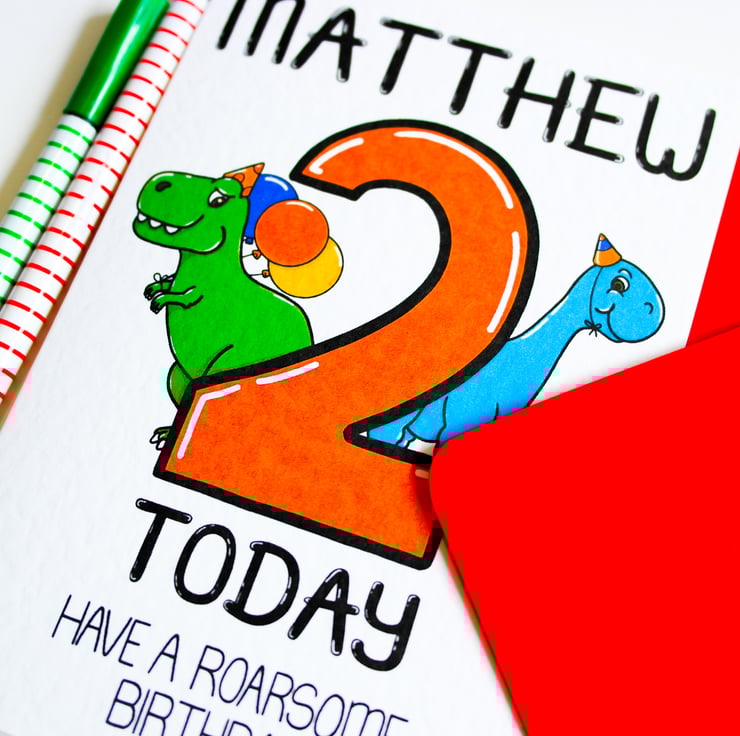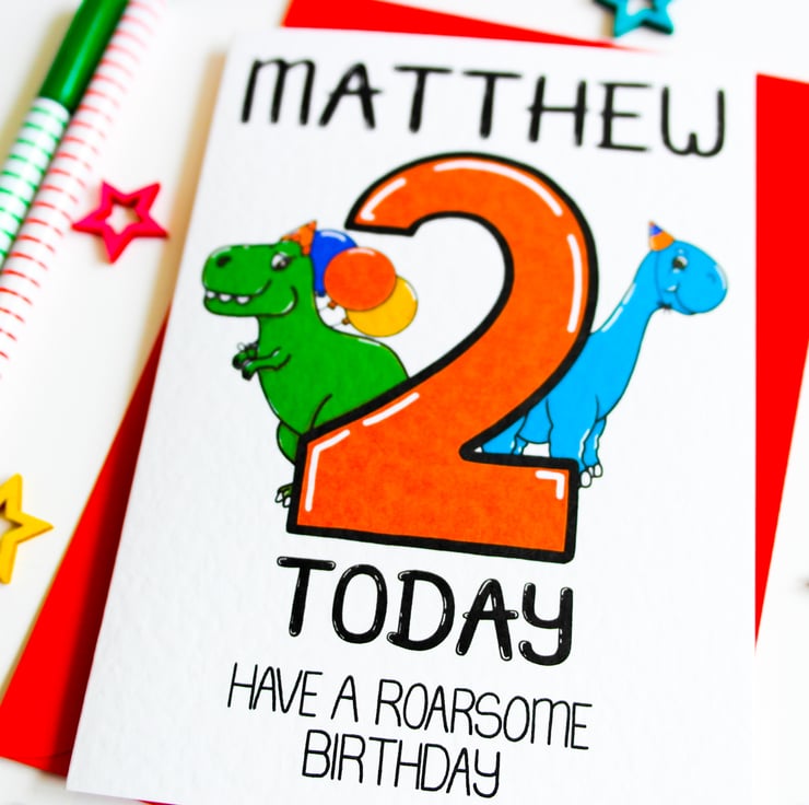 Personalisable Birthday card. A prefect card for a 2 year old Dinosaur lover