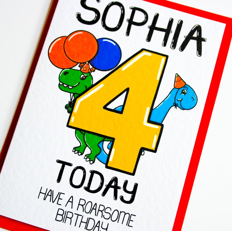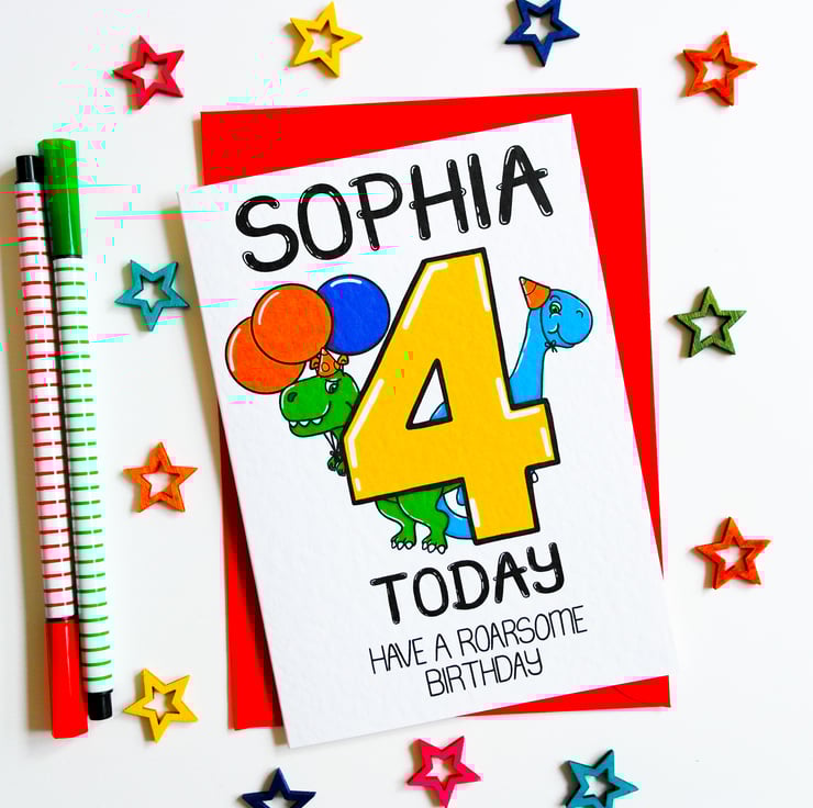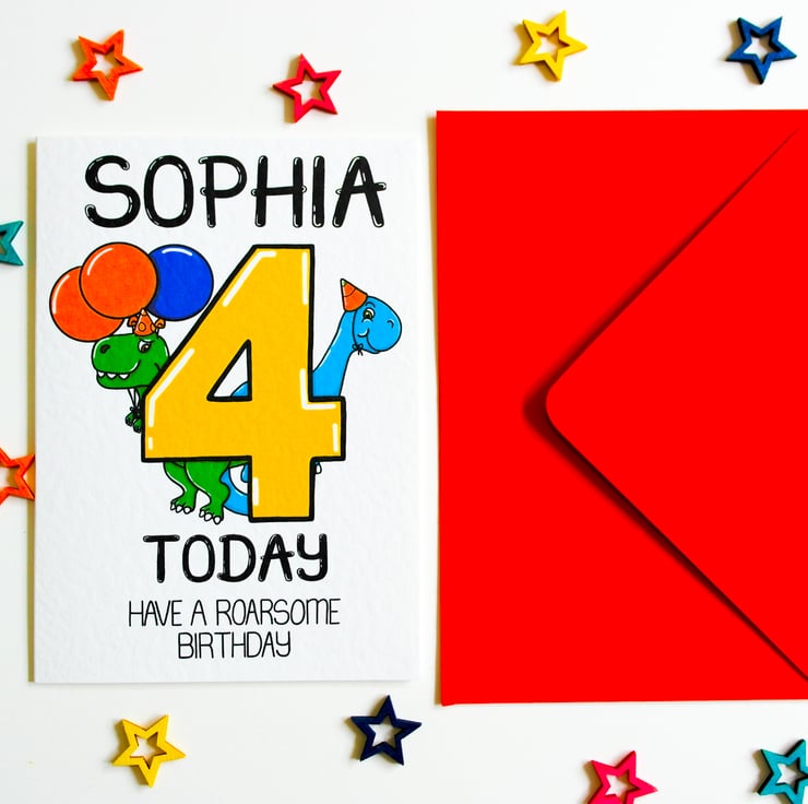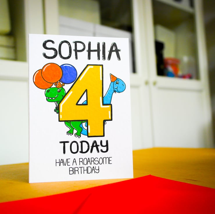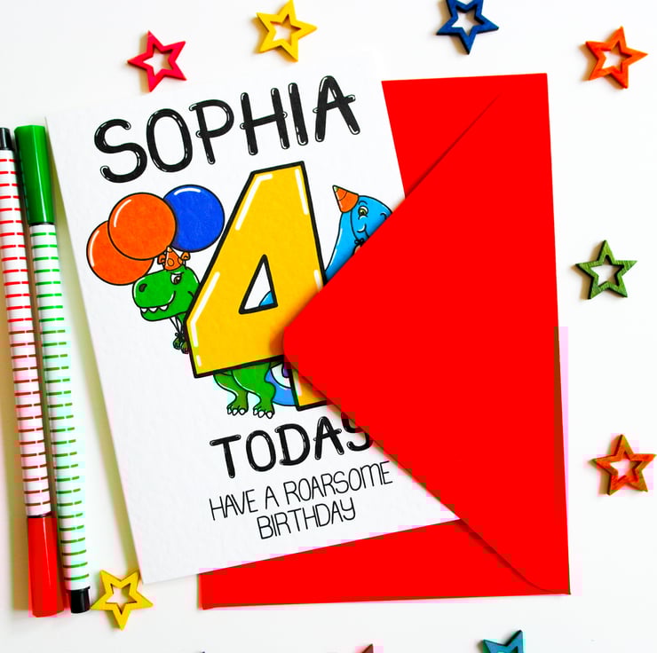 Personalised Birthday Card 4 Today Have a Roarsome Birthday with cute dinosaurs