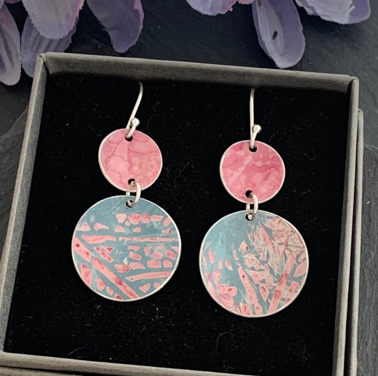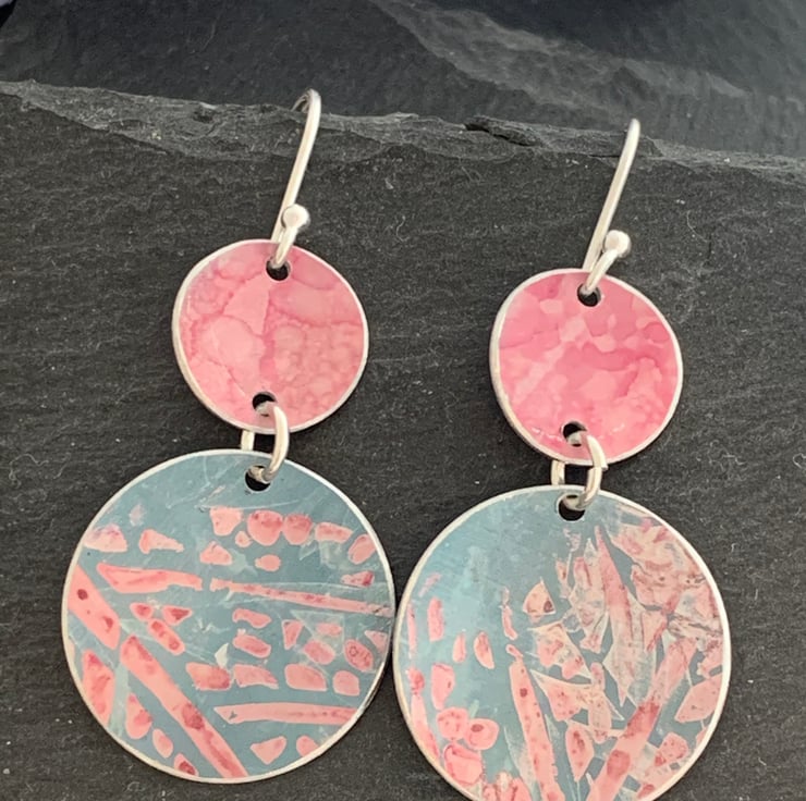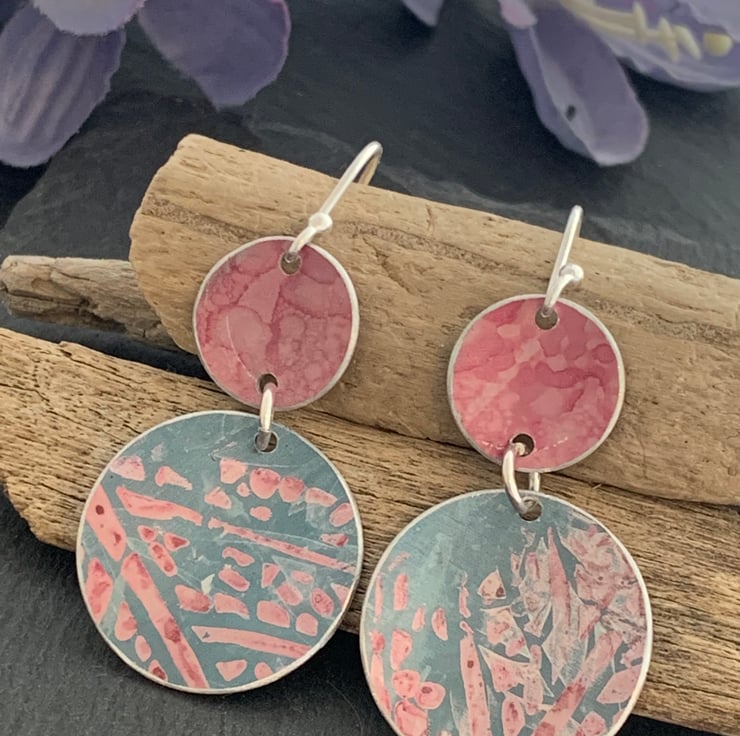 Hand painted and hand crafted Aluminium/sterling silver drop earrings.