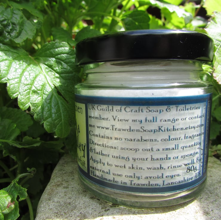 Sold in a 125ml glass jar (the label itself is polyester to enable it to remain waterproof when in use in the bath or shower). It is Cruelty Free, Vegetarian (not Vegan) friendly. Free from SLS, perfume, colour, parabens & sulphates. The jar is 280ml & filled to the top, net product weight is a minimum of 185g