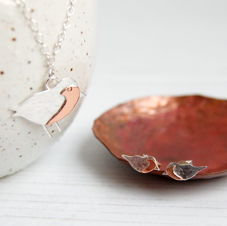 These silver robins have a shiny copper breast which contrasts beautifully with the hammered silver.