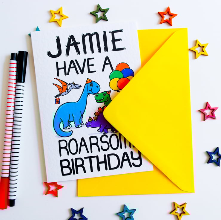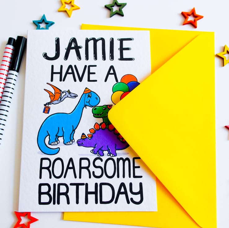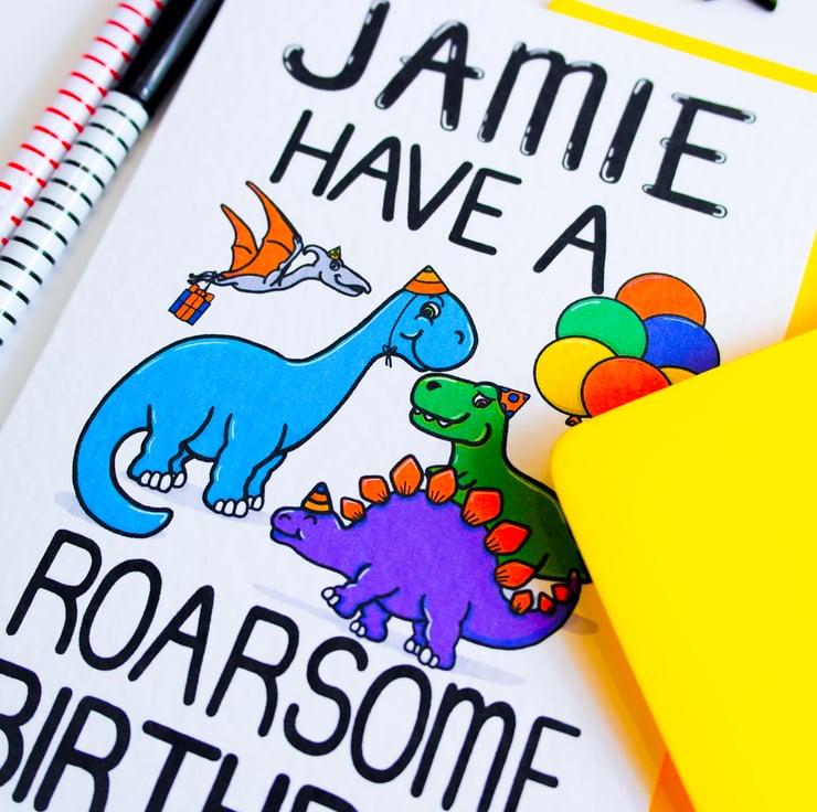 Greeting on front: HAVE A ROARSOME BIRTHDAY