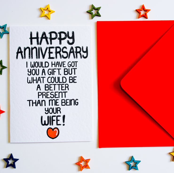 Who doesn't love a funny anniversary card? lets hope they have a good sense of humour especially if you don't actually get them a gift too!