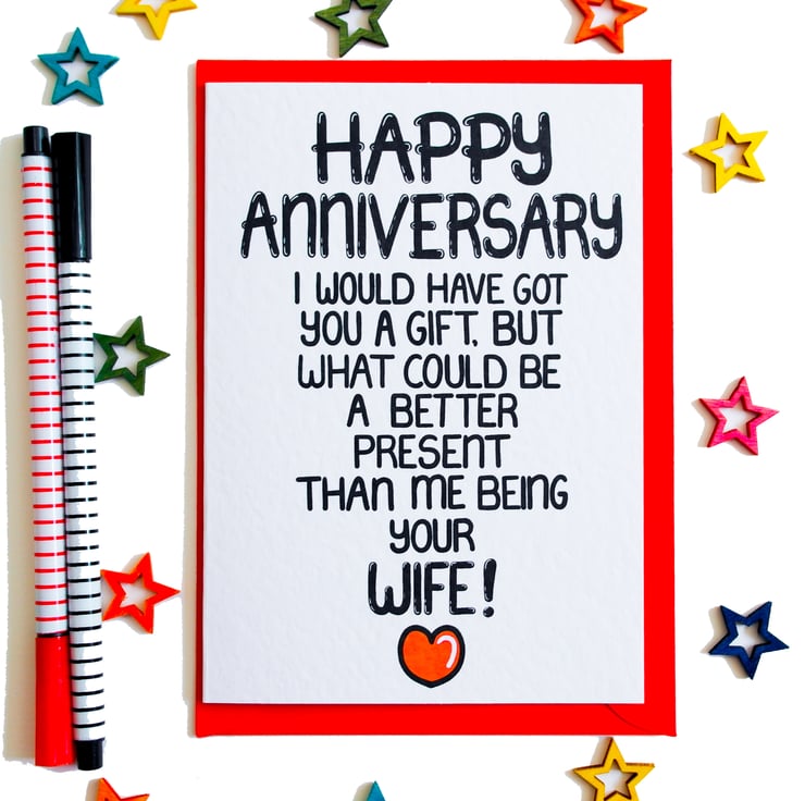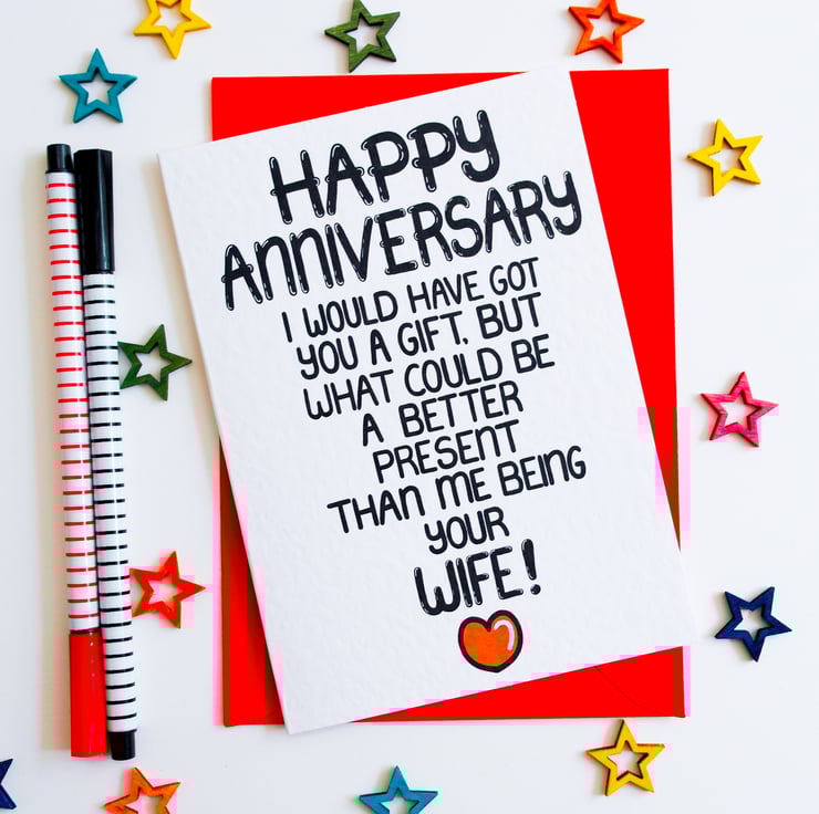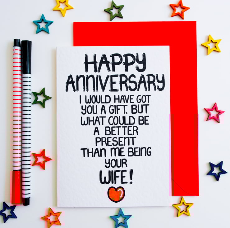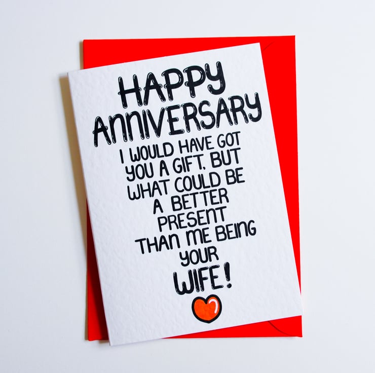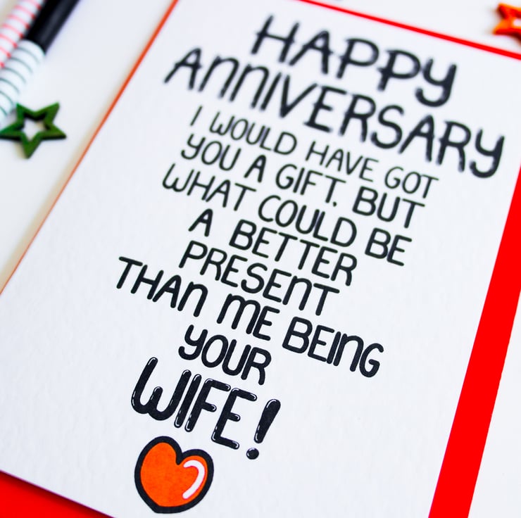 Who doesn't love a funny anniversary card? lets hope they have a good sense of humour especially if you don't actually get them a gift too!