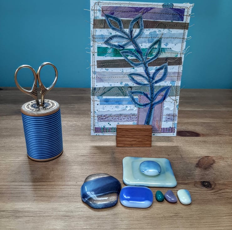 The stylised leaf motif is a great favourite of mine for use in printing, making books and paper collage. I like working in limited collections with slight differences and I have a LOT of paper pieces as off-cuts from other projects. My plan chest in the corner of my kitchen (aka my studio!) is full of them.