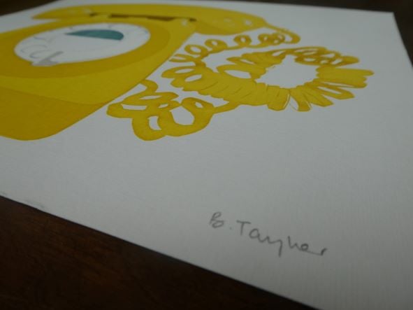 Yellow Retro Telephone - Handmade Silkscreen Print