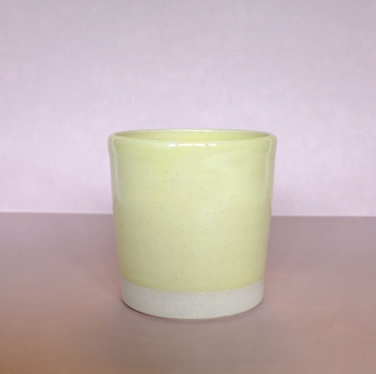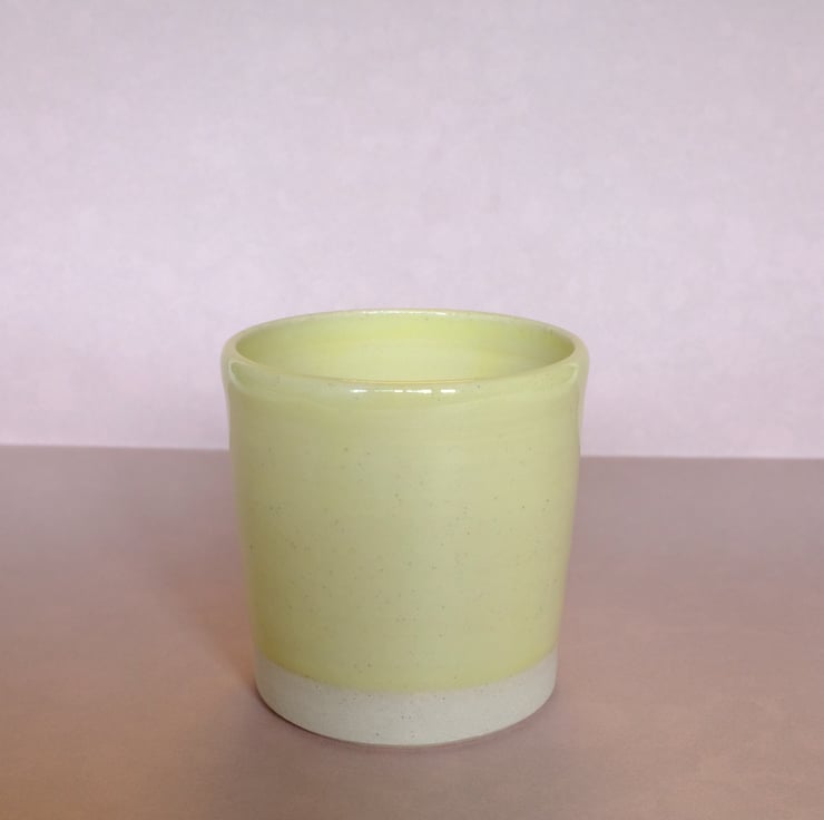 Hand thrown, pale yellow plant pot. Perfect for a baby succulent. Height: 8cm. Diameter: 7.1cm