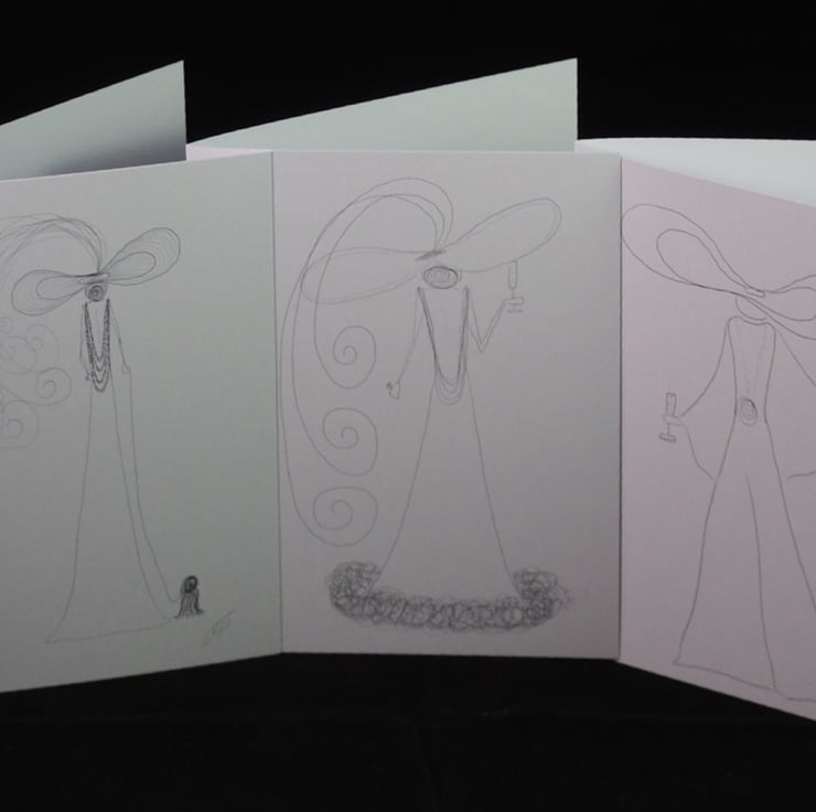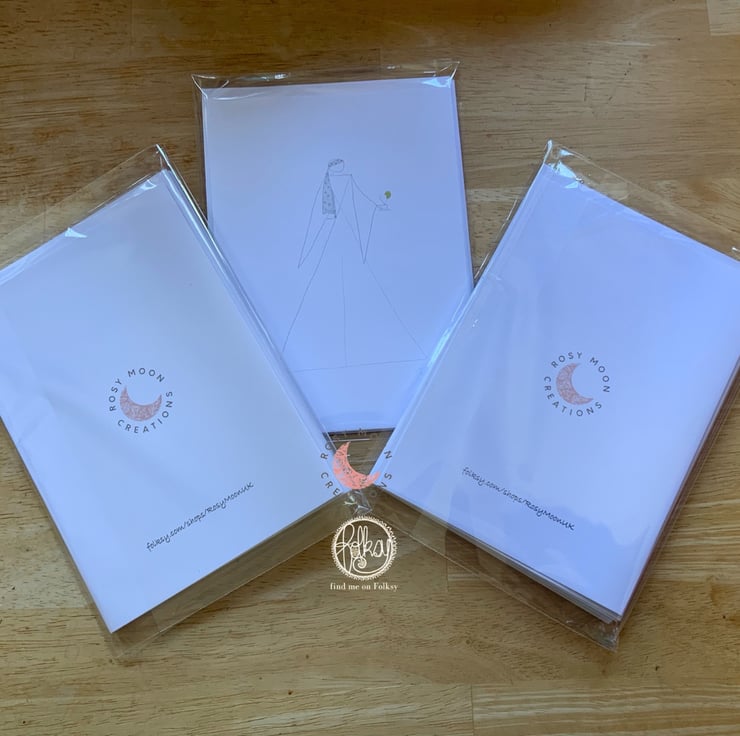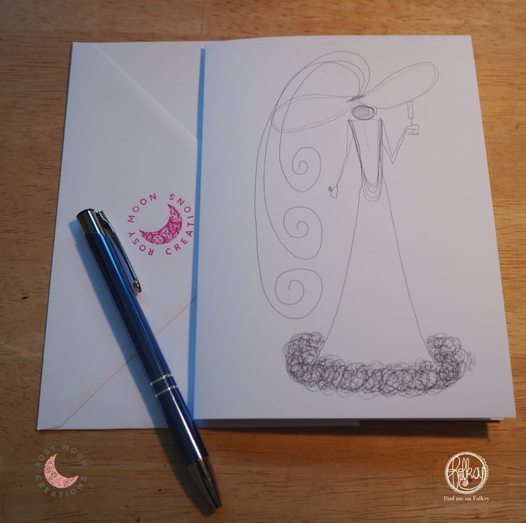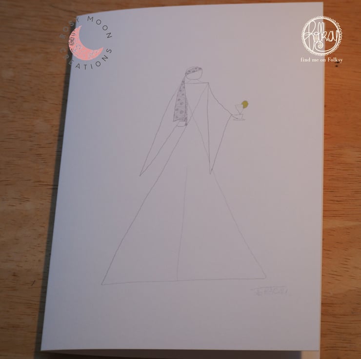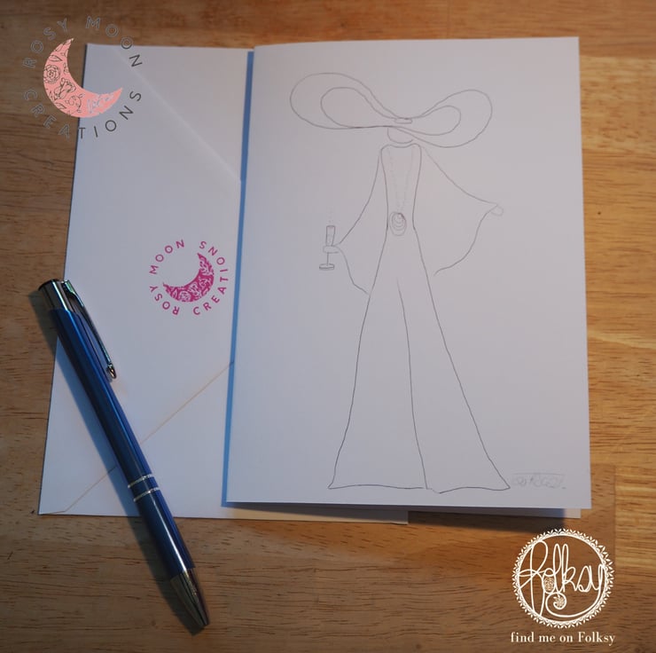 These hand drawn cards featuring glamorous ladies in big hats come in a pack of five. Each card measures approximately 12x17cm and have matching envelopes.