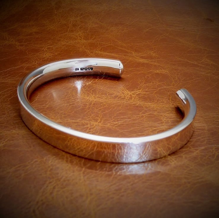 This Gents Heavy D Shape Open Torque Bangle Bracelet is Solid Sterling Silver with makers mark D L (Daryl Locke) and a full set of London Assay Office Marks.