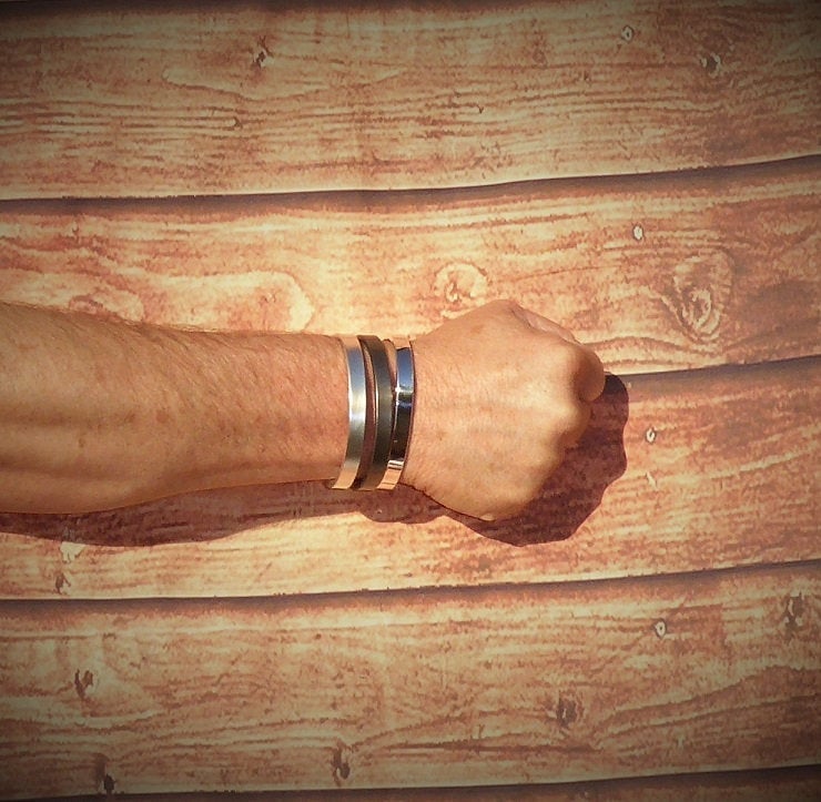 The flat of the "D" is on the outside witch make this Bracelet very comfortable on the wrist.
