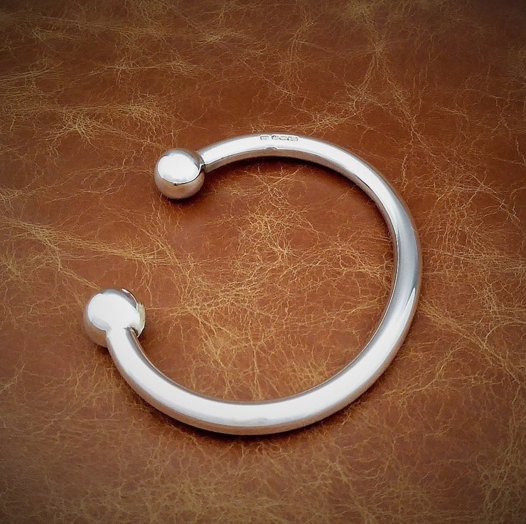This gents open Bangle is Solid Sterling Silver with makers mark DL and a full set of London Assay Office Hallmarks.